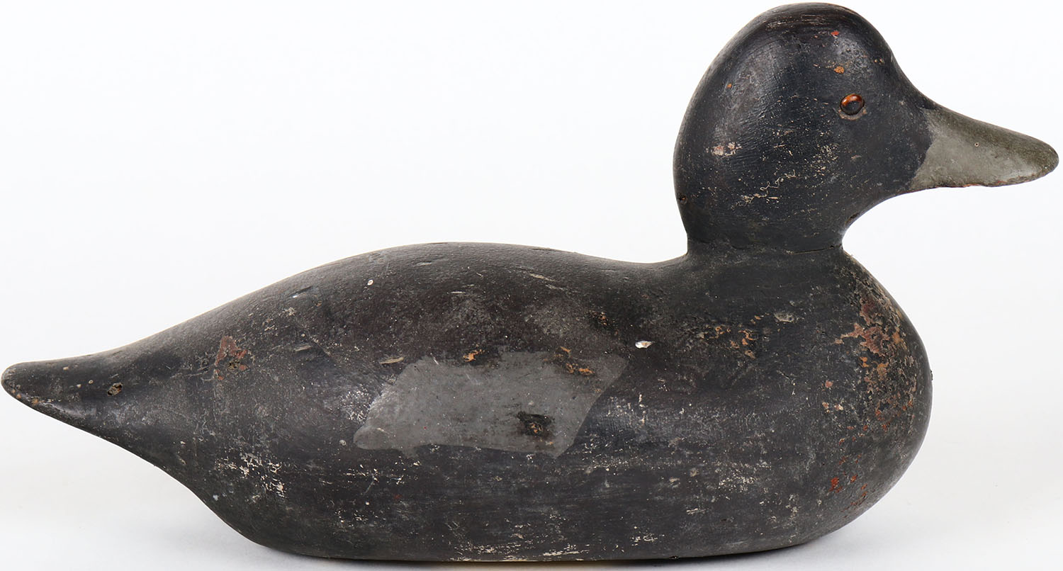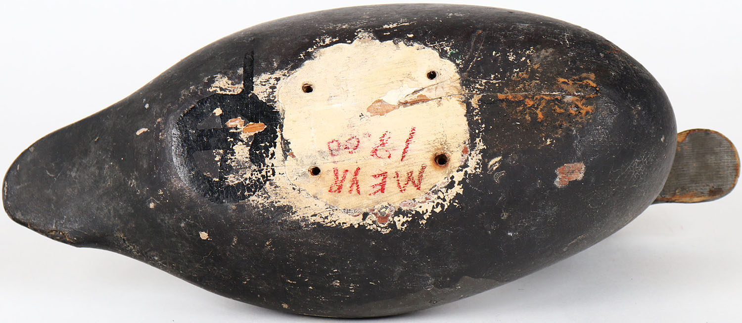 Bluebill Drake by Meyr, glass eyes, solid wood, structurally excellent, signed on bottom, original paint. Grade: Very Good ++ - Value: 40 to 80