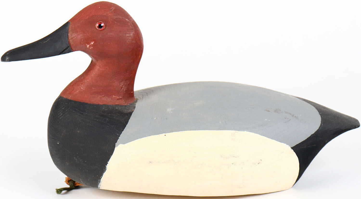 Canvasback Drake by CW, glass eyes, hollow wood, structurally excellent, branded CW on bottom, original paint. Grade: MINT - Value: 30 to 60