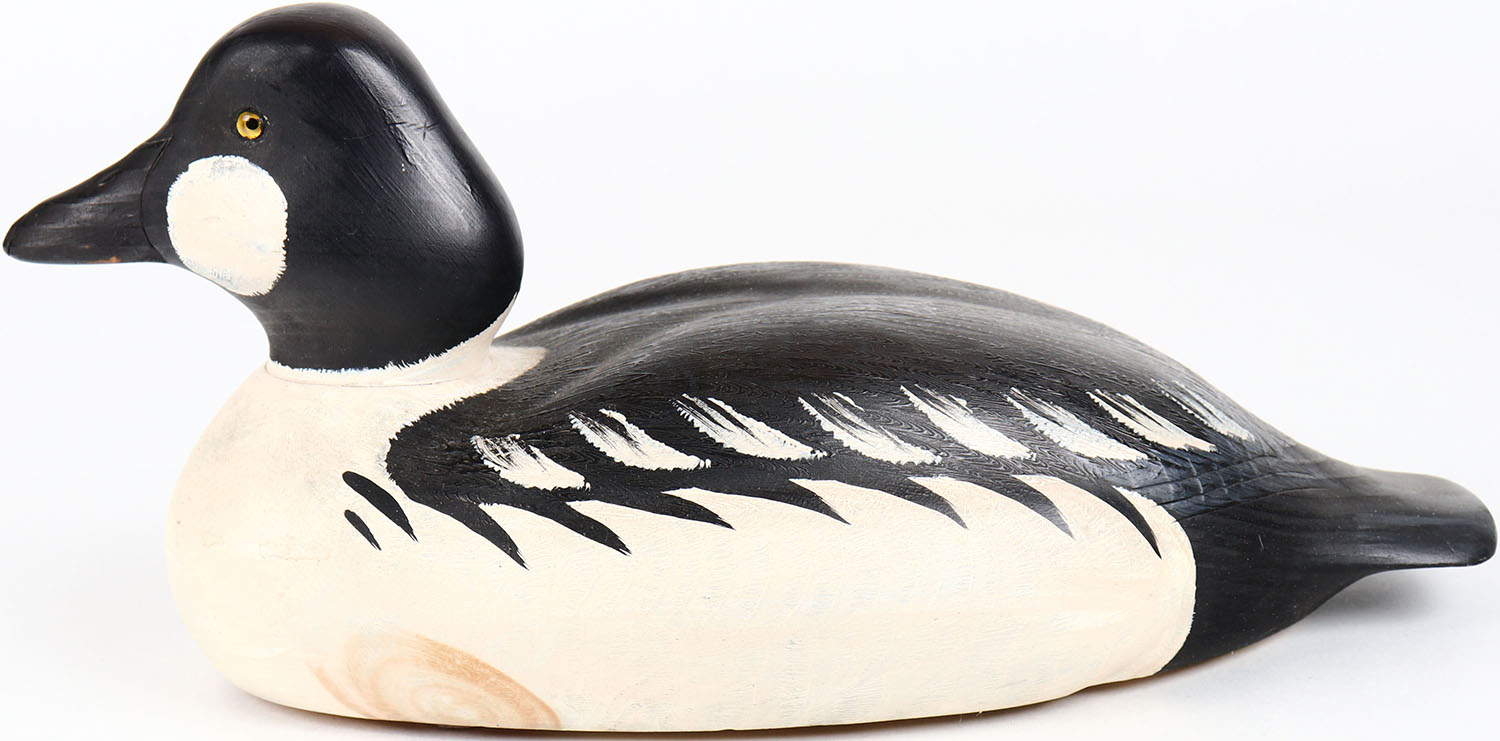 Goldeneye Drake by Barbara Kearns, St. Louis MO. glass eyes, solid wood, structurally excellent, signed on bottom, original paint. Grade: MINT - Value: 40 to 80