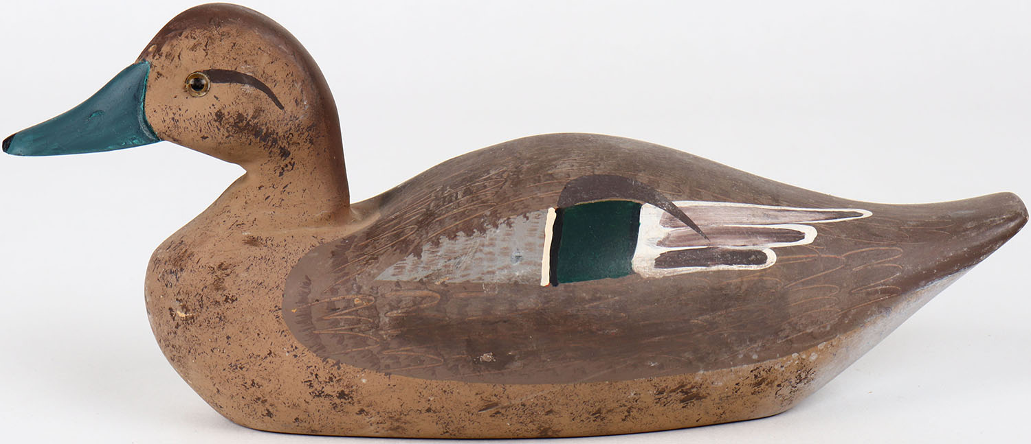 Green Wing Teal Hen by unknown maker, glass eyes, solid wood, structurally excellent, original paint. Grade: MINT - Value: 40 to 80