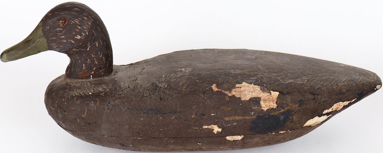 Mallard Hen by unknown maker, glass eyes, hollow wood, structurally excellent, original paint. Grade: Very Good ++ - Value: 30 to 60