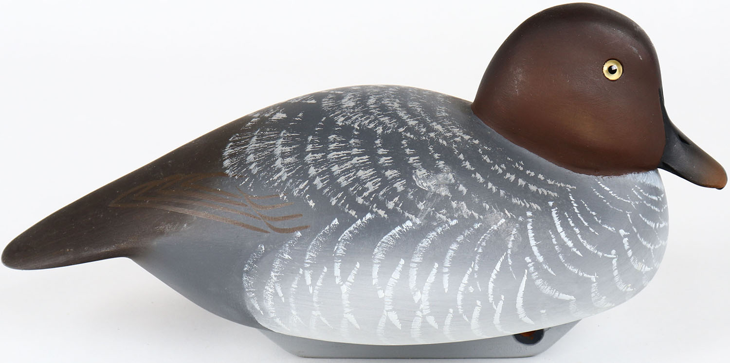 Goldeneye Hen by Bill Schauber, glass eyes, solid wood, structurally excellent, signed on bottom, original paint. Grade: MINT - Value: 40 to 80