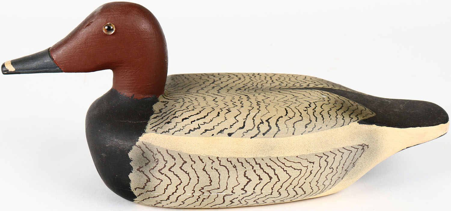 Redhead Drake by CC Cutting glass eyes, solid wood, structurally excellent, branded CC CUTTING on bottom, original paint. Grade: MINT - Value: 30 to 60