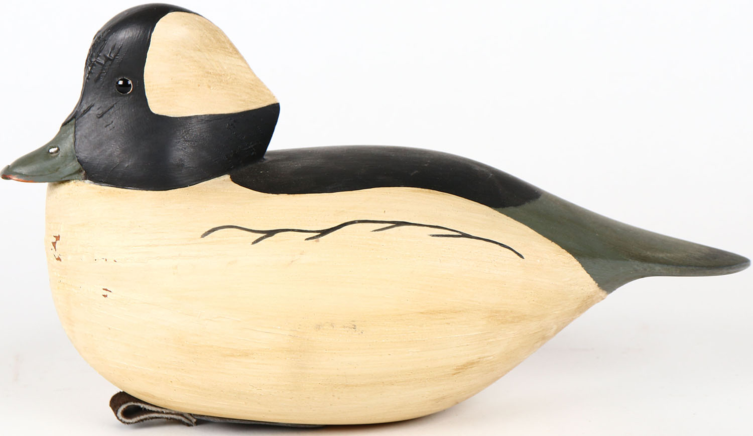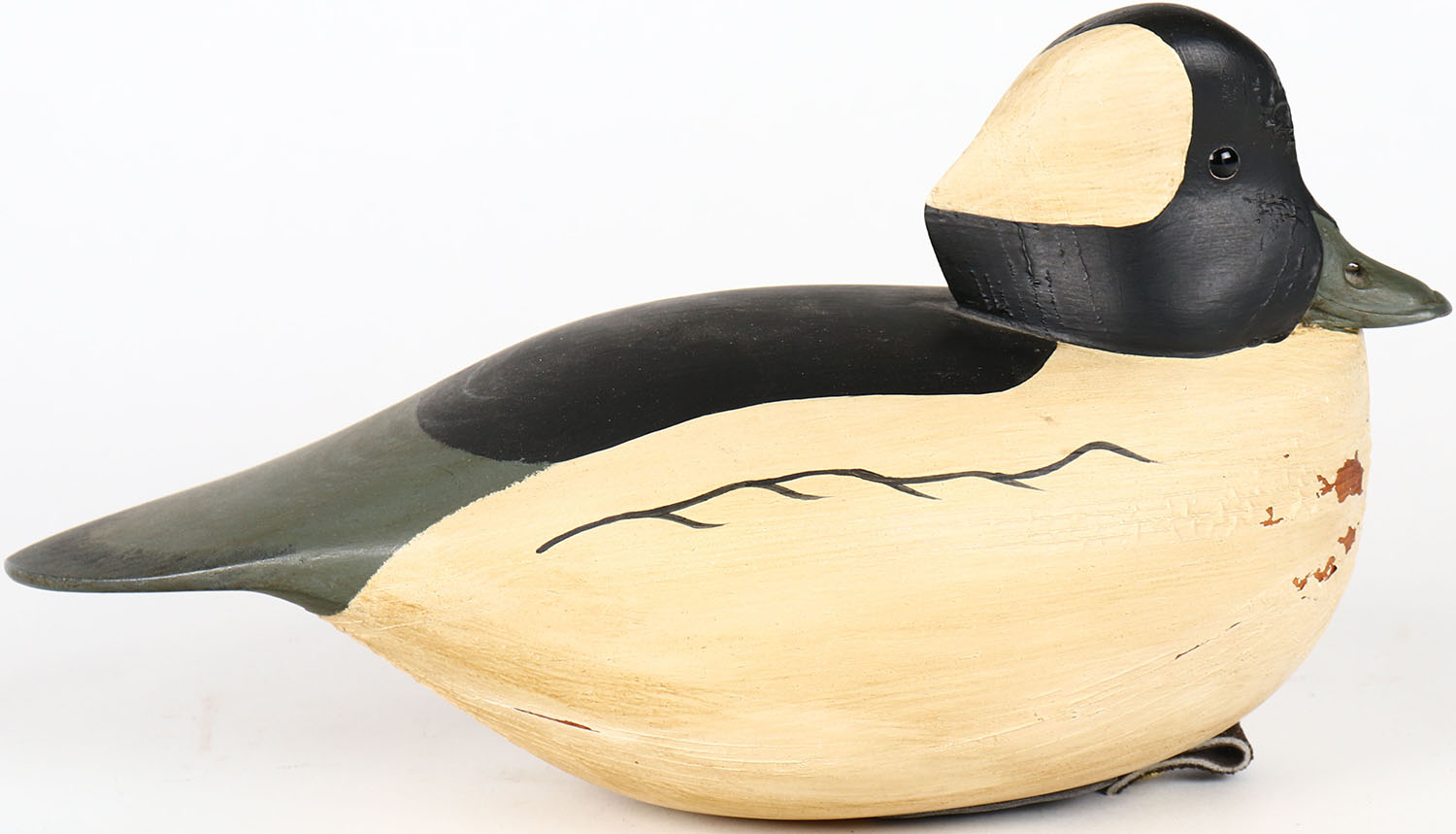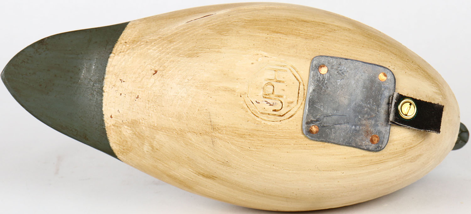 Bufflehead Drake by JPH, glass eyes, hollow wood, structurally excellent, branded JPH on bottom, original paint. Grade: MINT - Value: 40 to 80