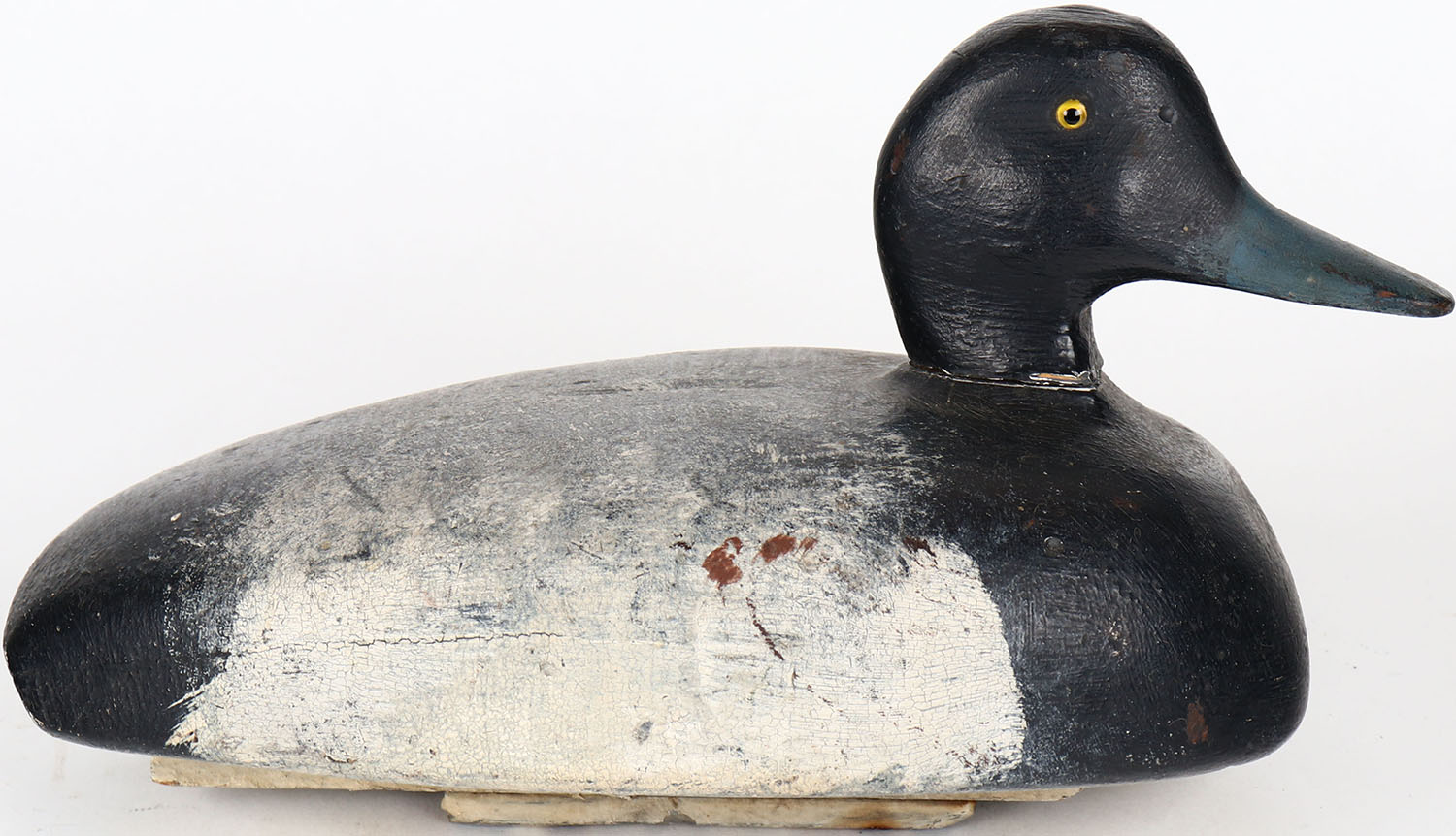 Bluebill Drake by unknown maker, glass eyes, solid wood, head is loose, original paint. Grade: Very Good ++ - Value: 30 to 60