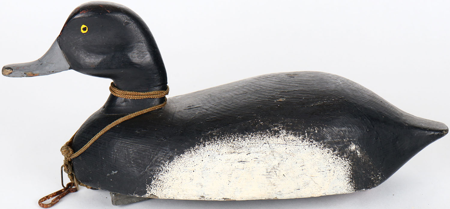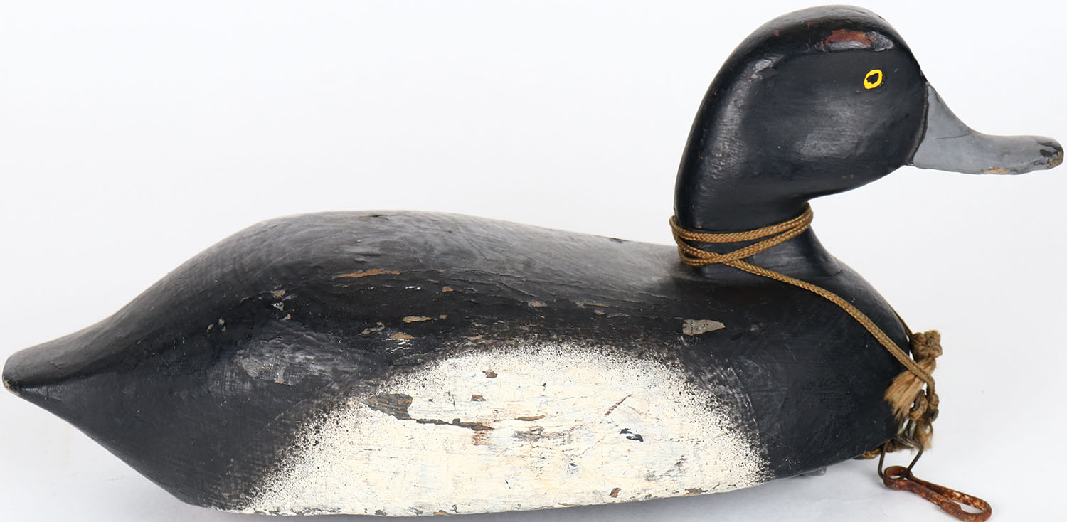 Bluebill Drake by unknown maker, painted eyes, structurally excellent, solid wood, original paint. Grade: Excellent - Value: 50 to 100