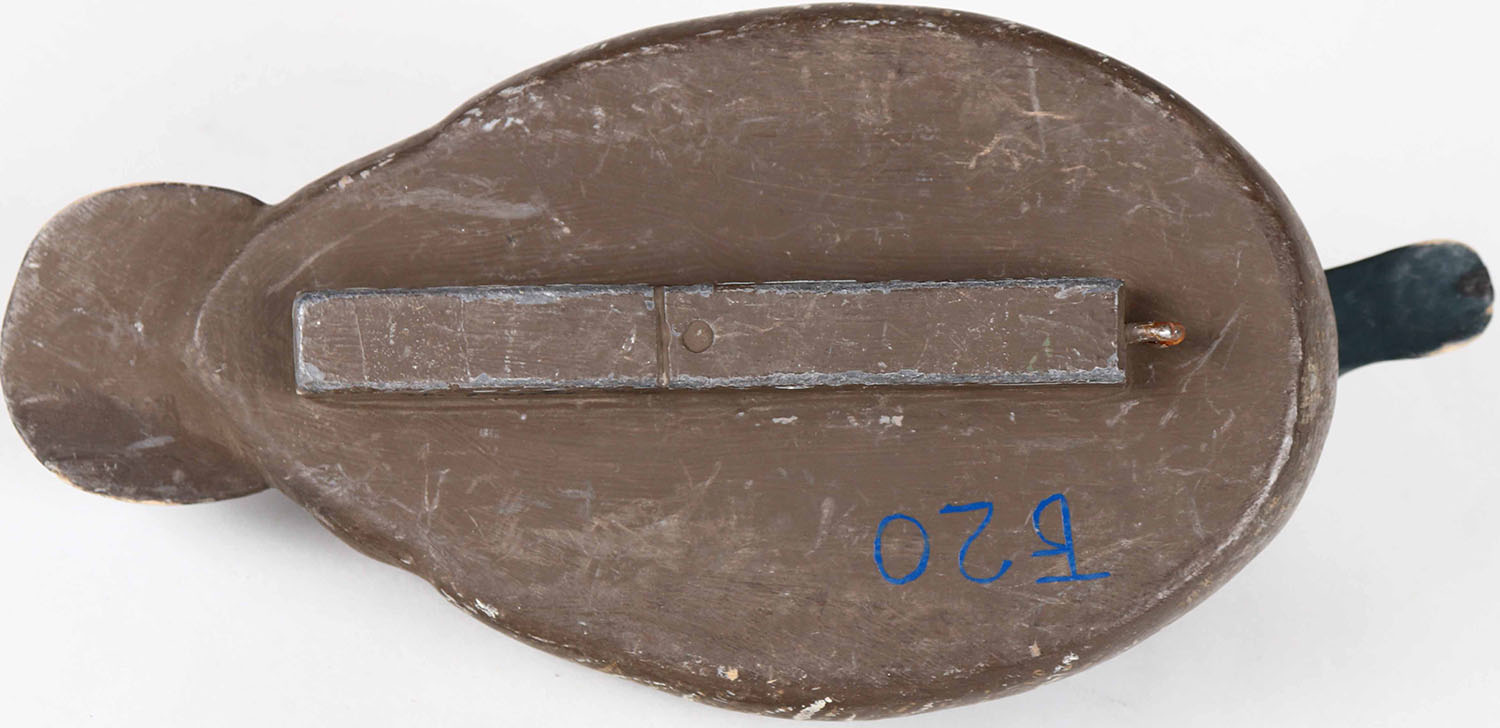 Bluebill Hen by unknown maker, glass eyes, hollow wood, structurally excellent, original paint. Grade: Excellent + - Value: 40 to 80