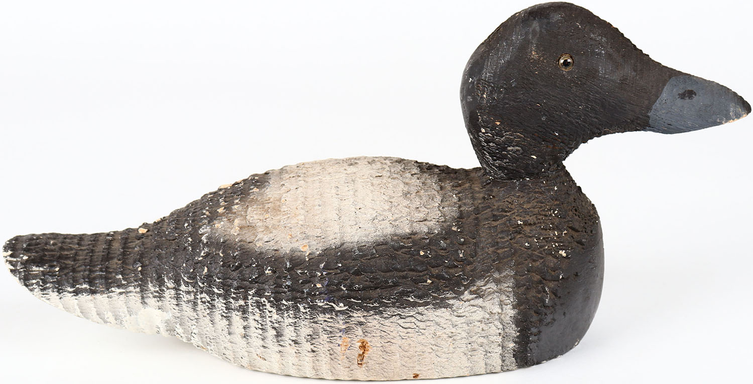 Bluebill Drake by PADCO, glass eyes, solid wood, structurally excellent, original paint. Grade: Excellent ++ - Value: 30 to 60