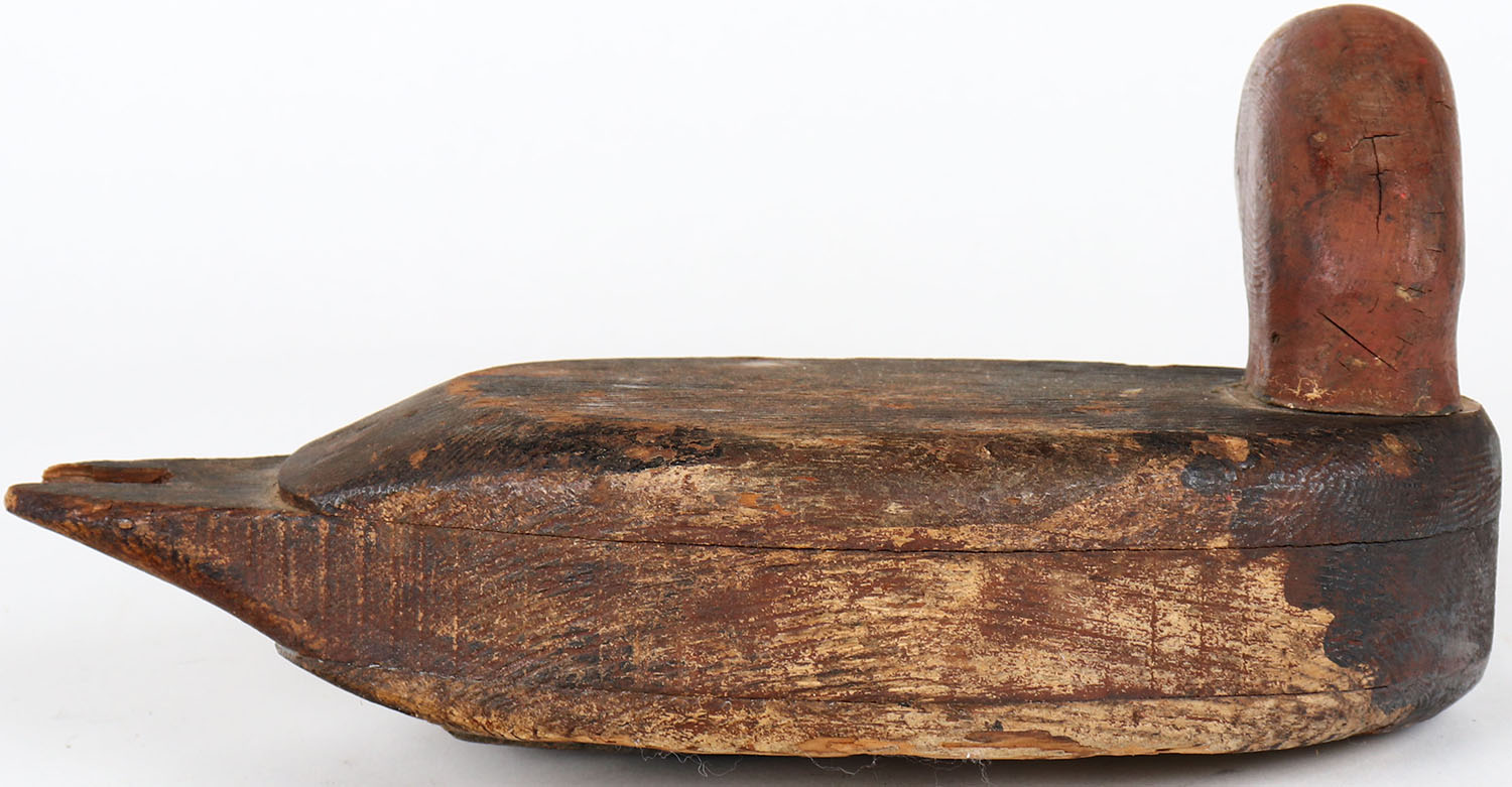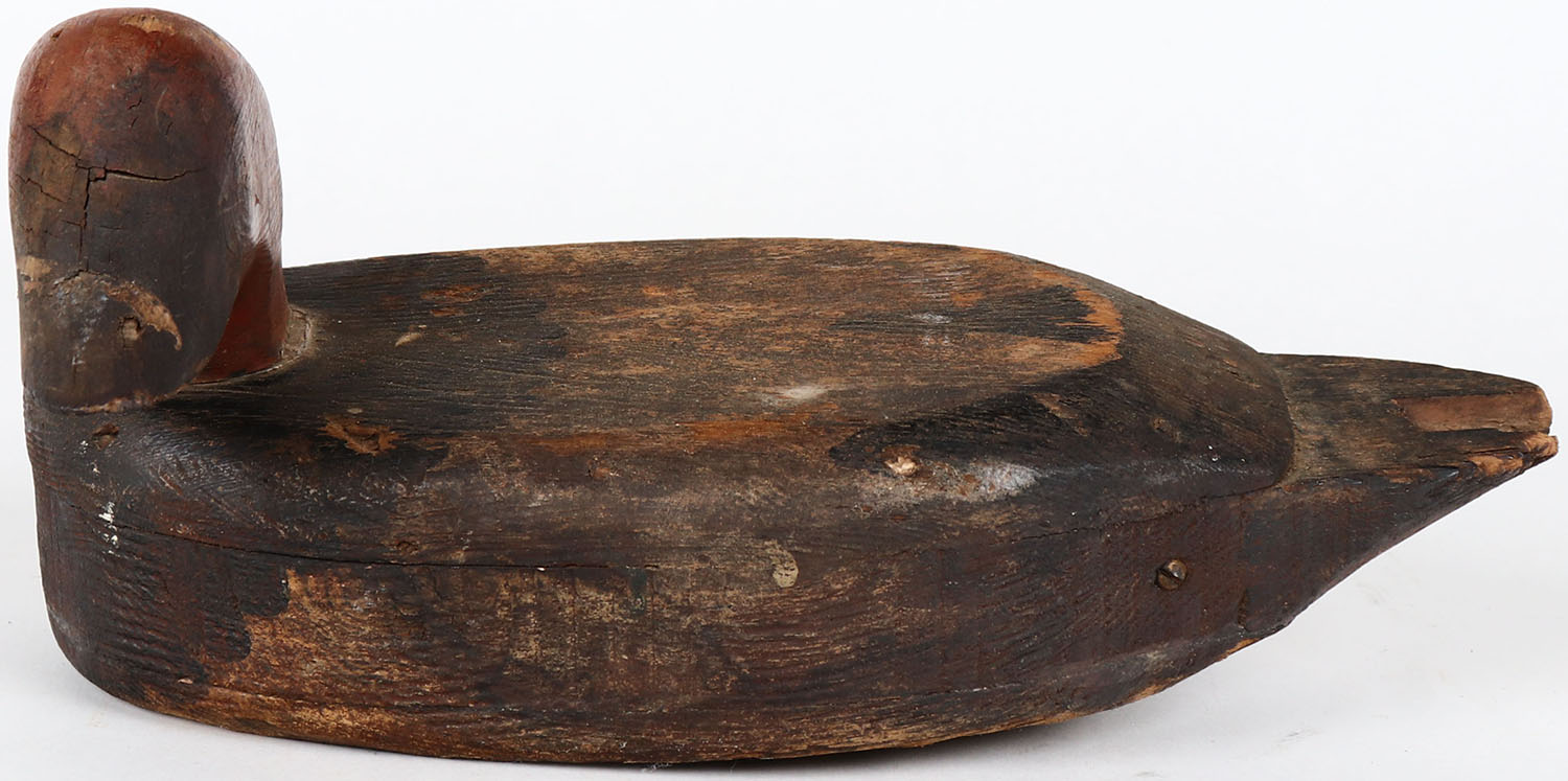 Redhead Drake by unknown maker, no eyes, solid wood, structurally excellent, original paint. Grade: Very Good + - Value: 40 to 80