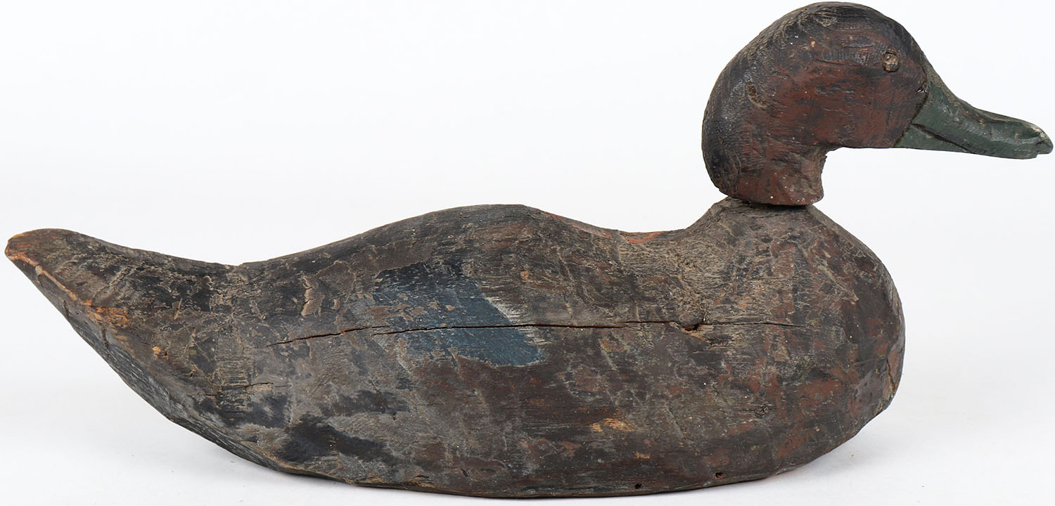 Pintail Drake by unknown maker, tack eyes, solid wood, head is loose, original paint. Grade: Very Good - Value: 30 to 60
