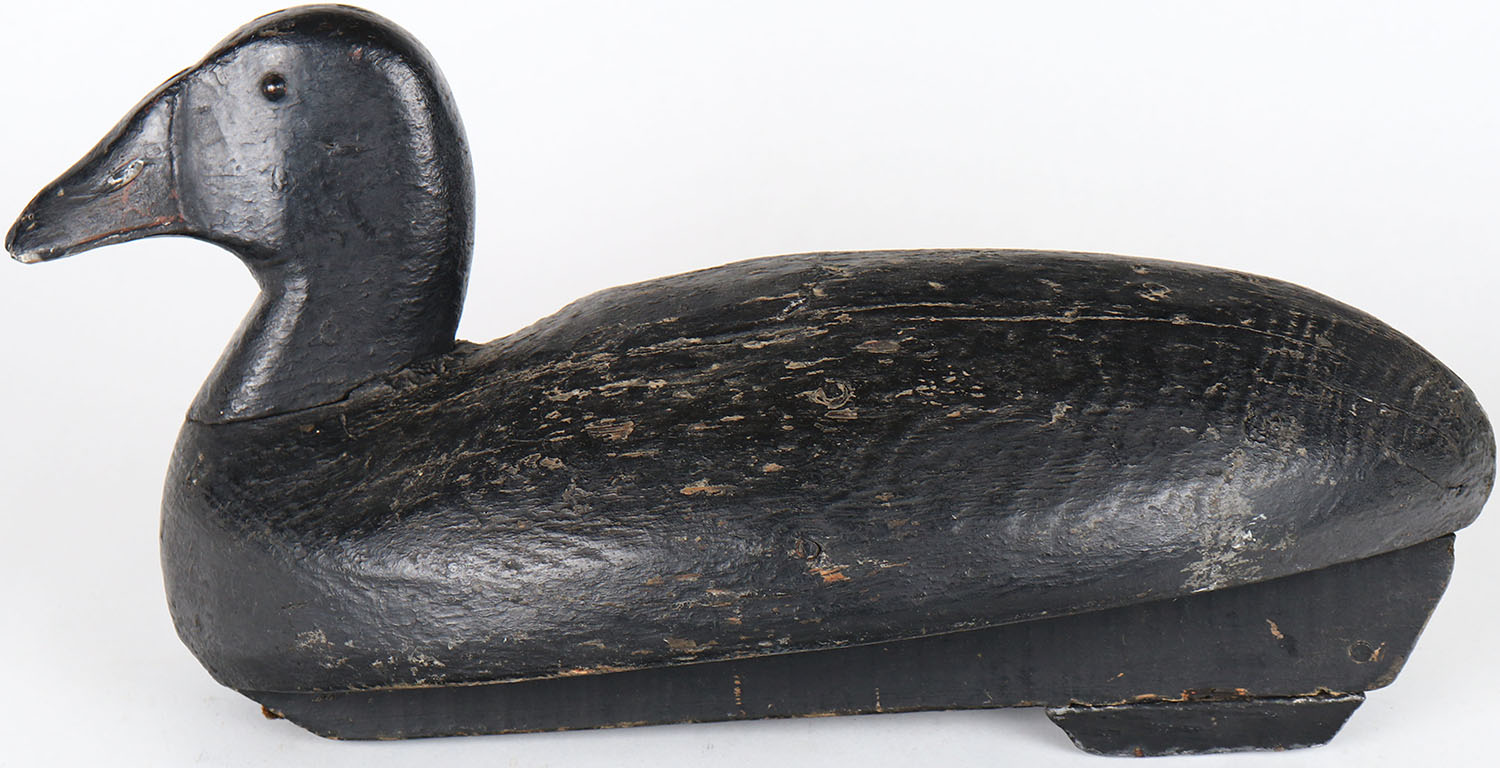 Bluebill by unknown maker, painted eyes, solid wood, structurally excellent, repainted. Grade: Very Good + - Value: 40 to 80