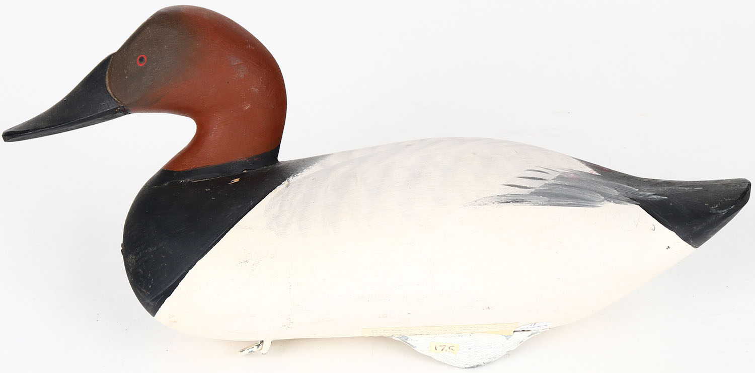 Canvasback Drake by Madison Mitchell Havre De Grace MD, painted eyes, solid wood, structurally excellent, signed on bottom, original paint. Grade: MINT - Value: 150 to 600