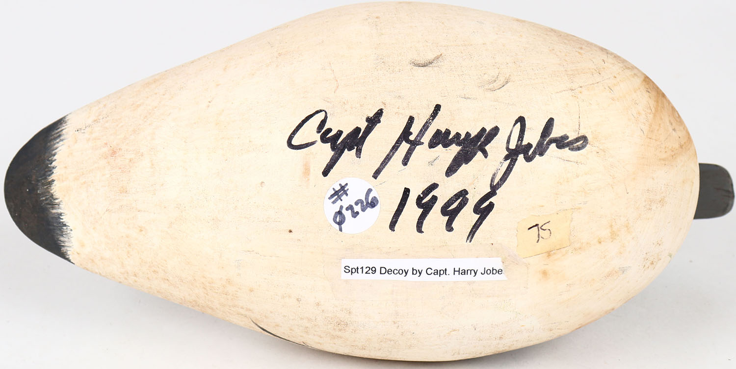 Bufflehead Drake by Capt. Harry R. Jobes, Havre de Grace, MD, painted eyes, solid wood, structurally excellent, signed on bottom, original paint. Grade: MINT - Value: 60 to 150