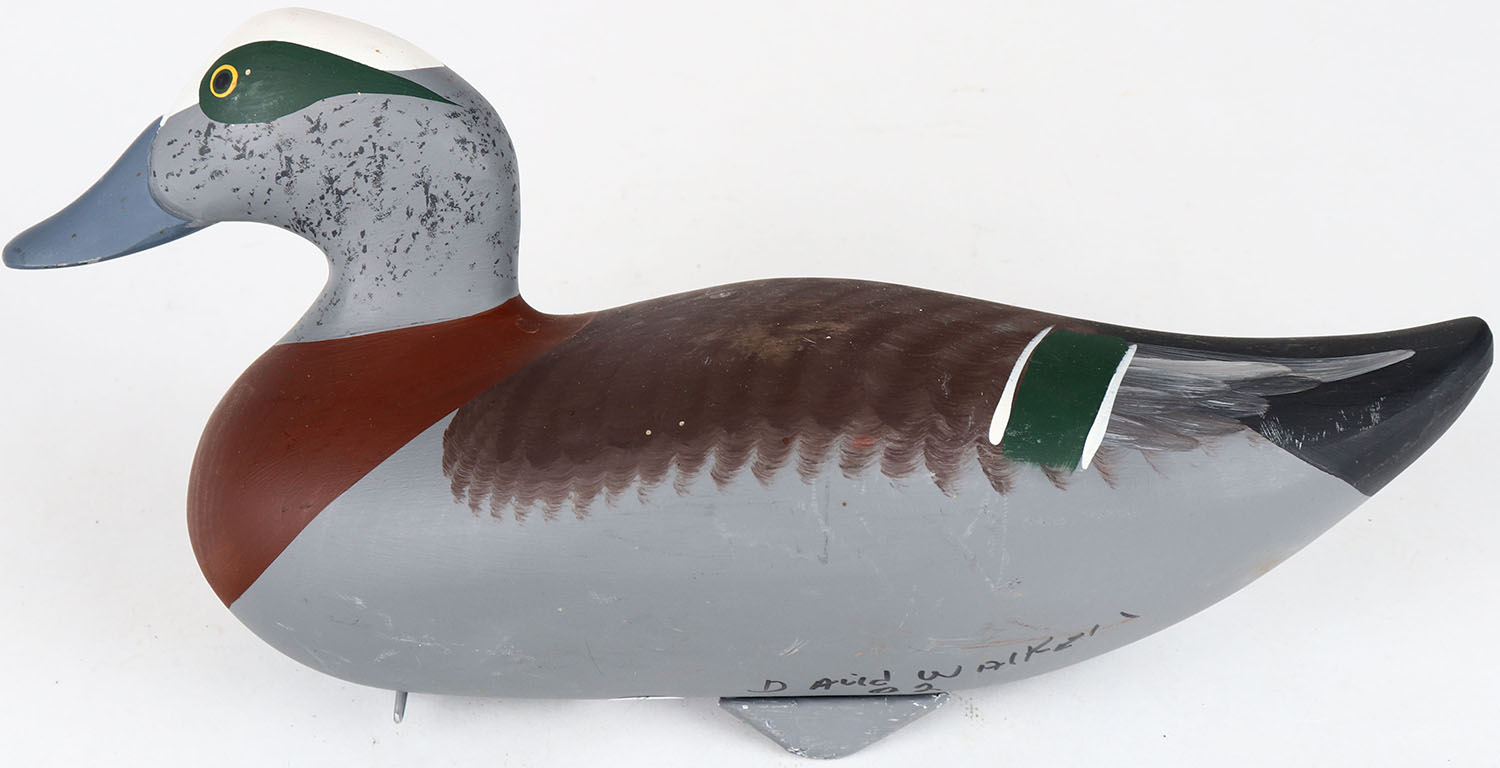 Widgeon Drake by David Walker, Havre de Grace, MD, painted eyes, solid wood, structurally excellent, signed on bottom, original paint. Grade: MINT - Value: 60 to 150