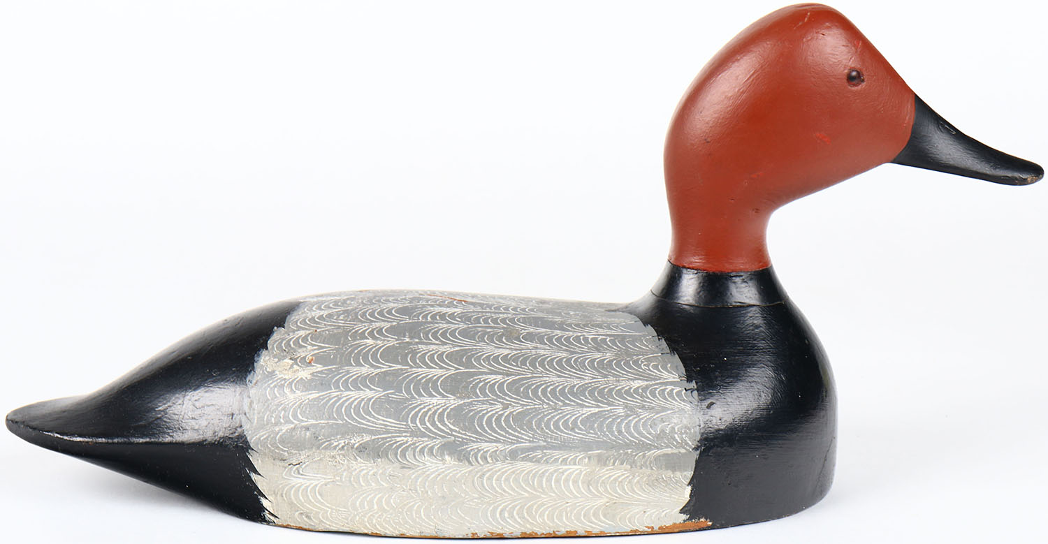 Canvasback Drake by Frank Coombs, Alexandria Bay, NY., glass eyes, structurally excellent, solid wood, original paint with comb painting. Grade: Excellent - Value: 150 to 300