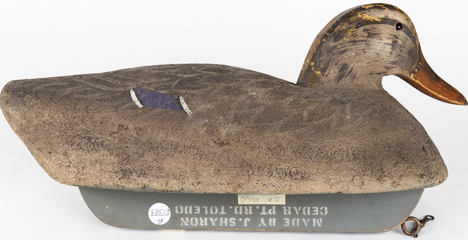 Mallard Hen by J. Sharon, Cedar PT. RD. Toledo, OH, glass eyes, structurally excellent, solid wood, original paint. Grade: Excellent - Value: 50 to 100