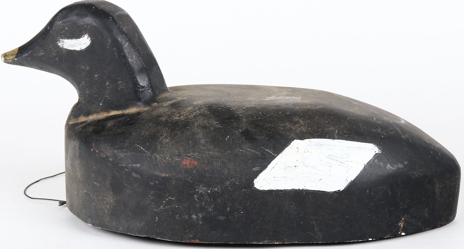 Scoter by unknown maker, MD, glass eyes, structurally excellent, solid wood, original paint. Grade: Excellent + - Value: 30 to 60