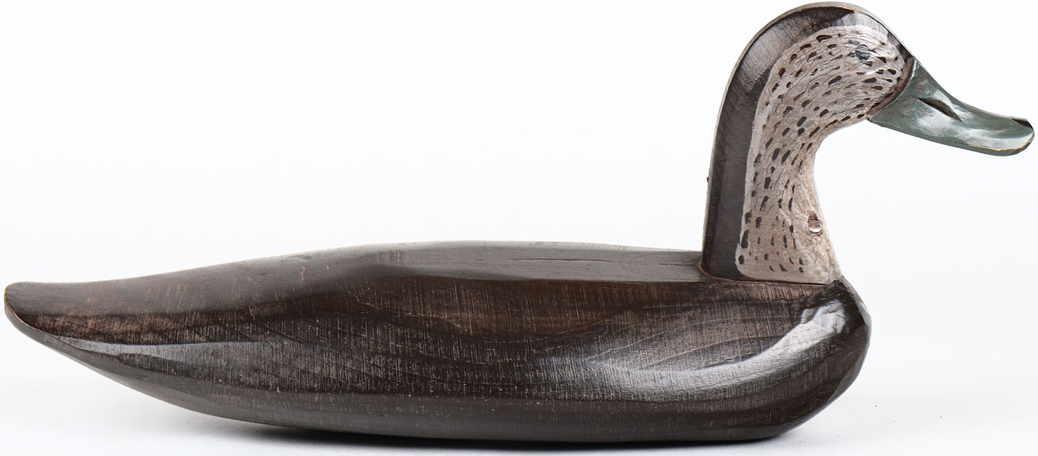 Black Duck by Joe Racine, Upper Bay Decoys, Elkton, MD, painted eyes, structurally excellent, solid wood, branded on bottom, original paint. Grade: MINT - Value: 60 to 150