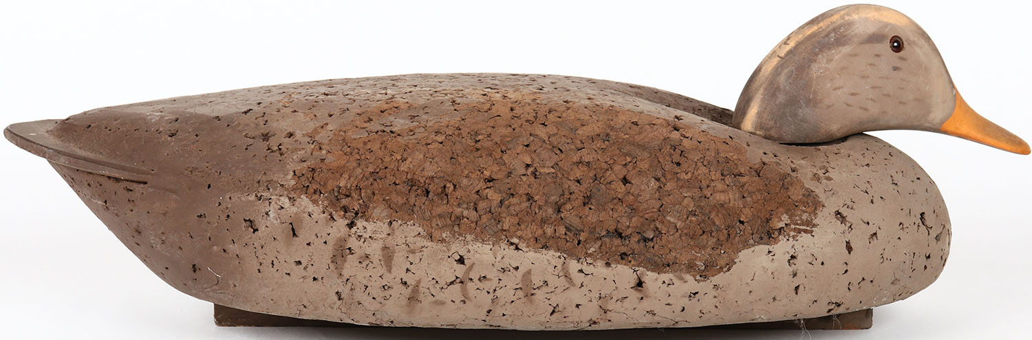 Mallard Hen by unknown maker, glass eyes, head comes off, solid cork body, original paint. Grade: Very Good ++ - Value: 40 to 80
