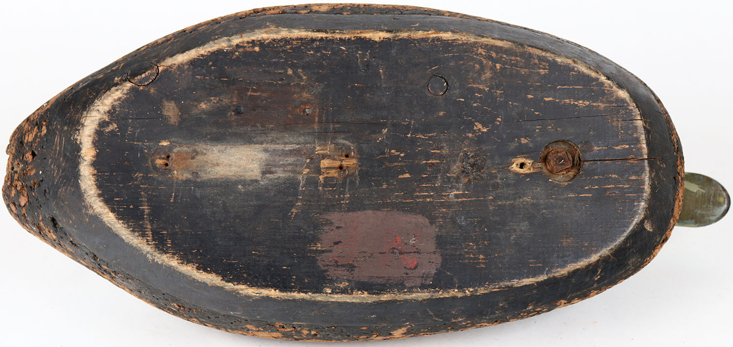 Black Duck by unknown maker, painted eyes, structurally excellent, solid cork body, original paint. Grade: Excellent ++ - Value: 10 to 20