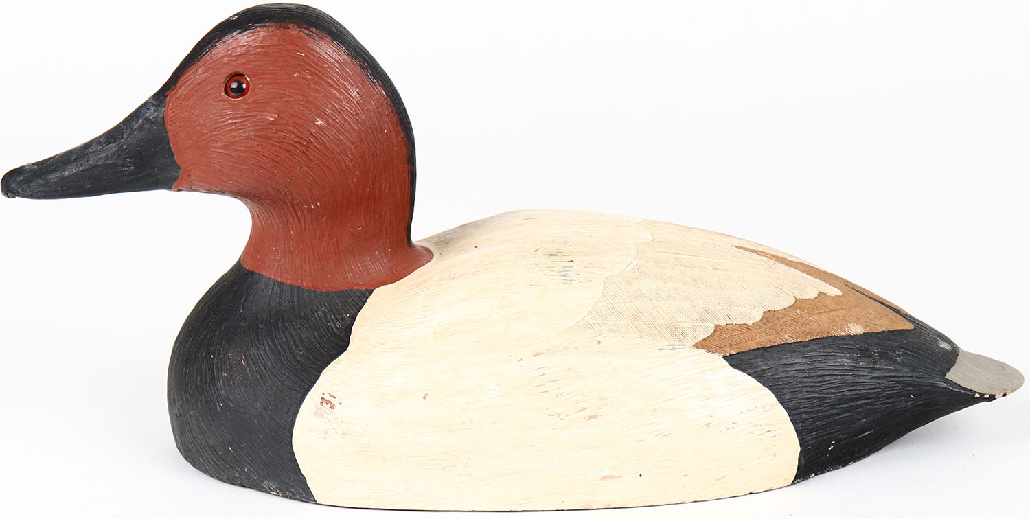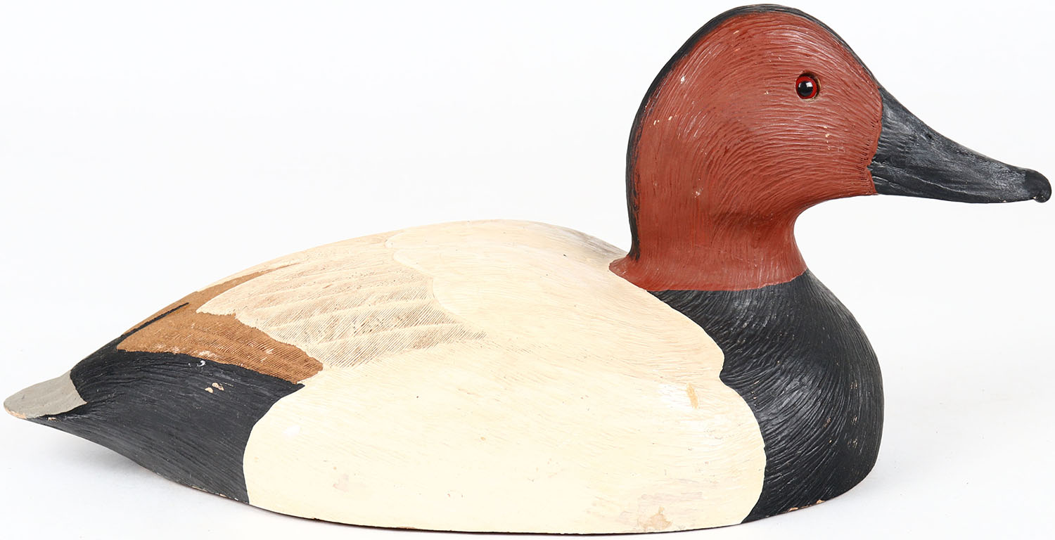 Canvasback Drake by Goose Creek Trademark Company, Asheville, N.C, glass eyes, structurally excellent, solid wood, original paint. Grade: Excellent ++ - Value: 20 to 40