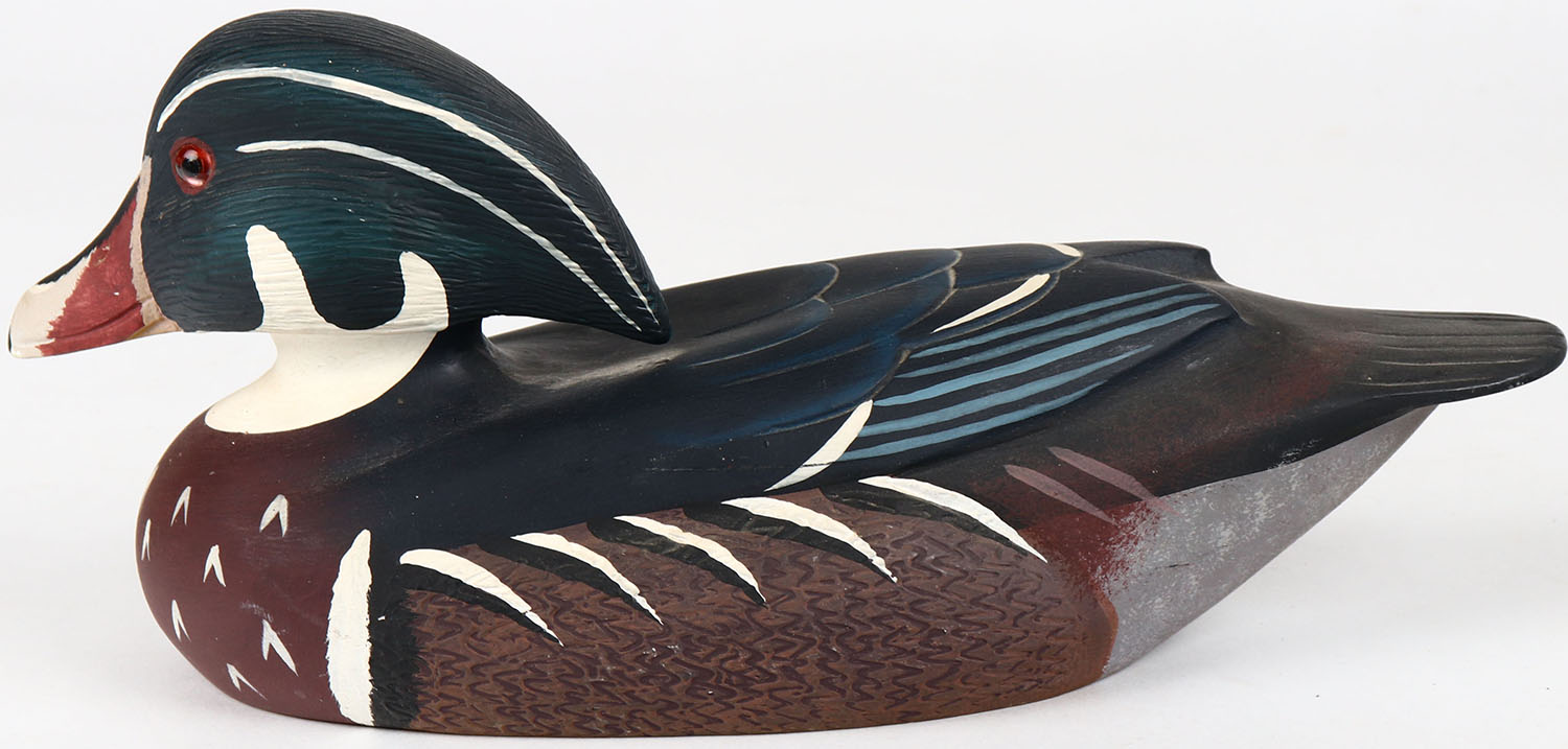 Wood Duck Drake by Bob Berry, North American Duck Collection, glass eyes, structurally excellent, solid wood, original paint. Grade: MINT - Value: 40 to 80