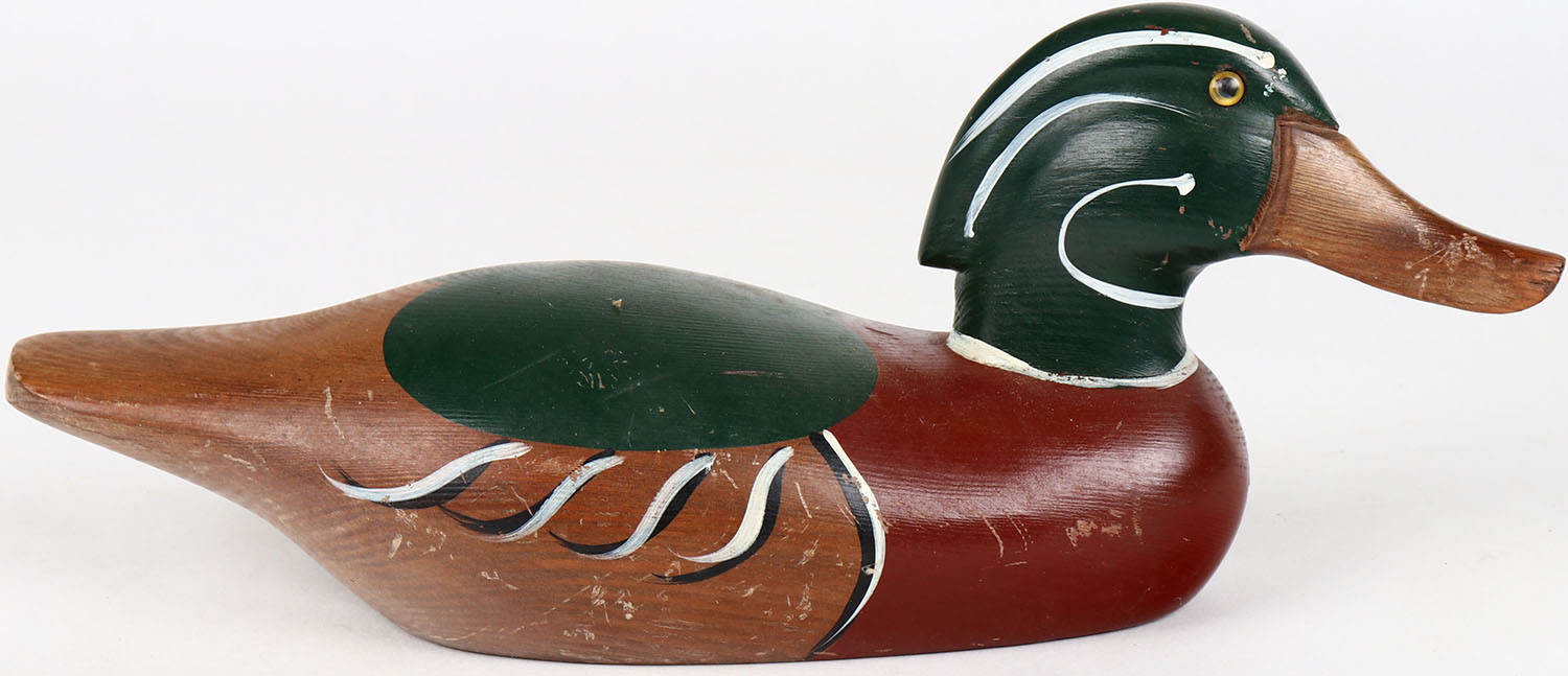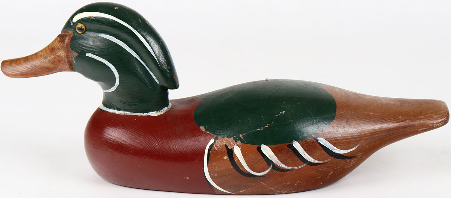 Wood Duck Drake by unknown maker, glass eyes, structurally excellent, solid wood, original paint. Grade: Excellent - Value: 40 to 80