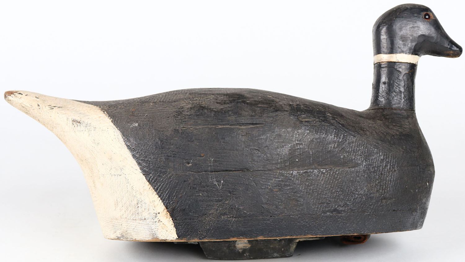 Black Brant by D.H. ''Bud'' Abram, North Vancouver, B.C., Canada, Circa 1920's-30's, glass eyes, hollow wood, head is loose, has age cracks on body, signed on bottom, original paint. Grade: Very Good ++ - Value: 100 to 200