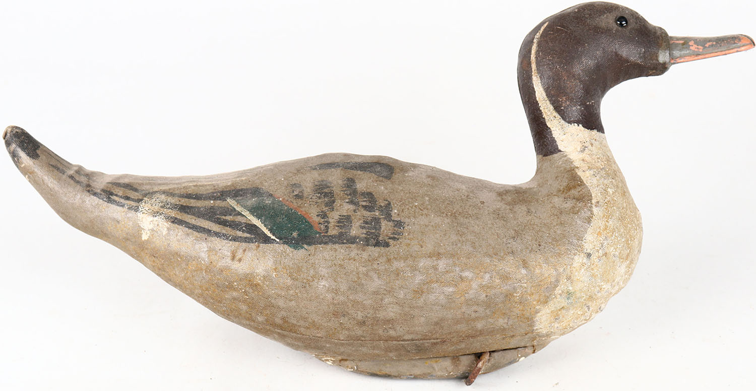 Pintail Drake by Scott Cork Decoy Company, PTD, Oakland, canvas over cork, glass eyes, original paint. Grade: Excellent - Value: 50 to 100