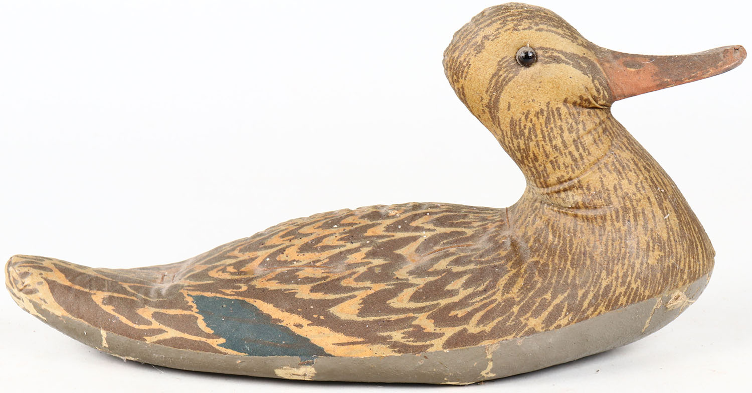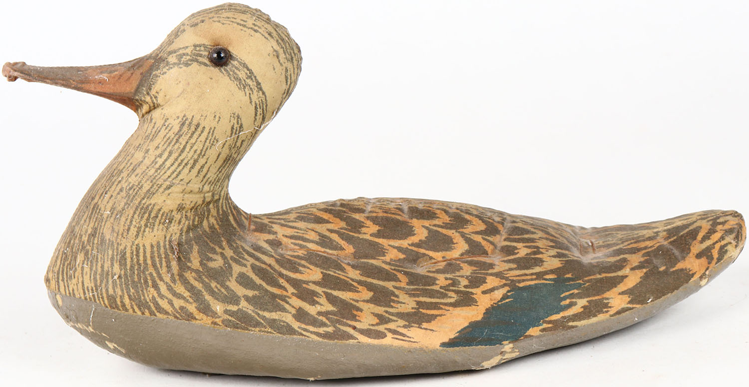 Mallard Hen by unknown maker, PTD, Oakland, canvas over cork, glass eyes, original paint. Grade: Excellent - Value: 30 to 100