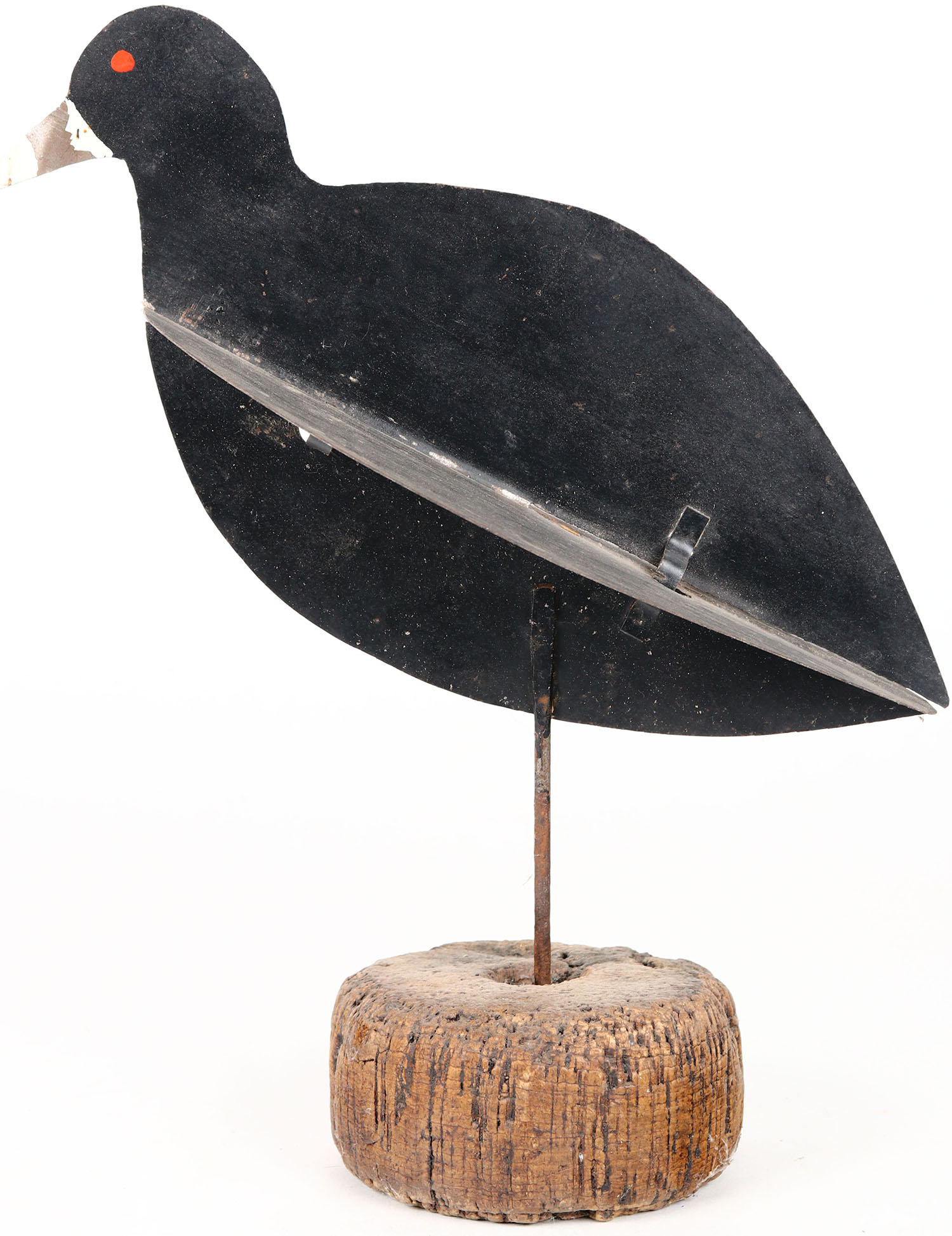 Metal Coot by unknown maker, on wood stand, metal body, original paint. Grade: Excellent - Value: 50 to 100