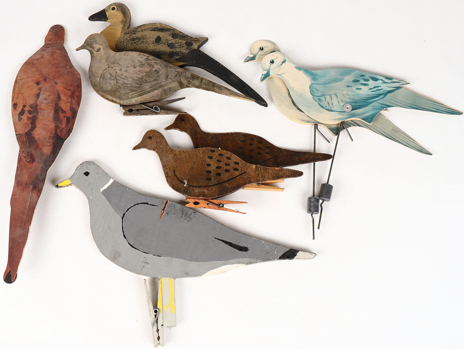 Large lot of Metal and Wood Decoys by unknown maker, has clips on the back, painted eyes, original paint. Grade: Excellent - Value: 2 to 100