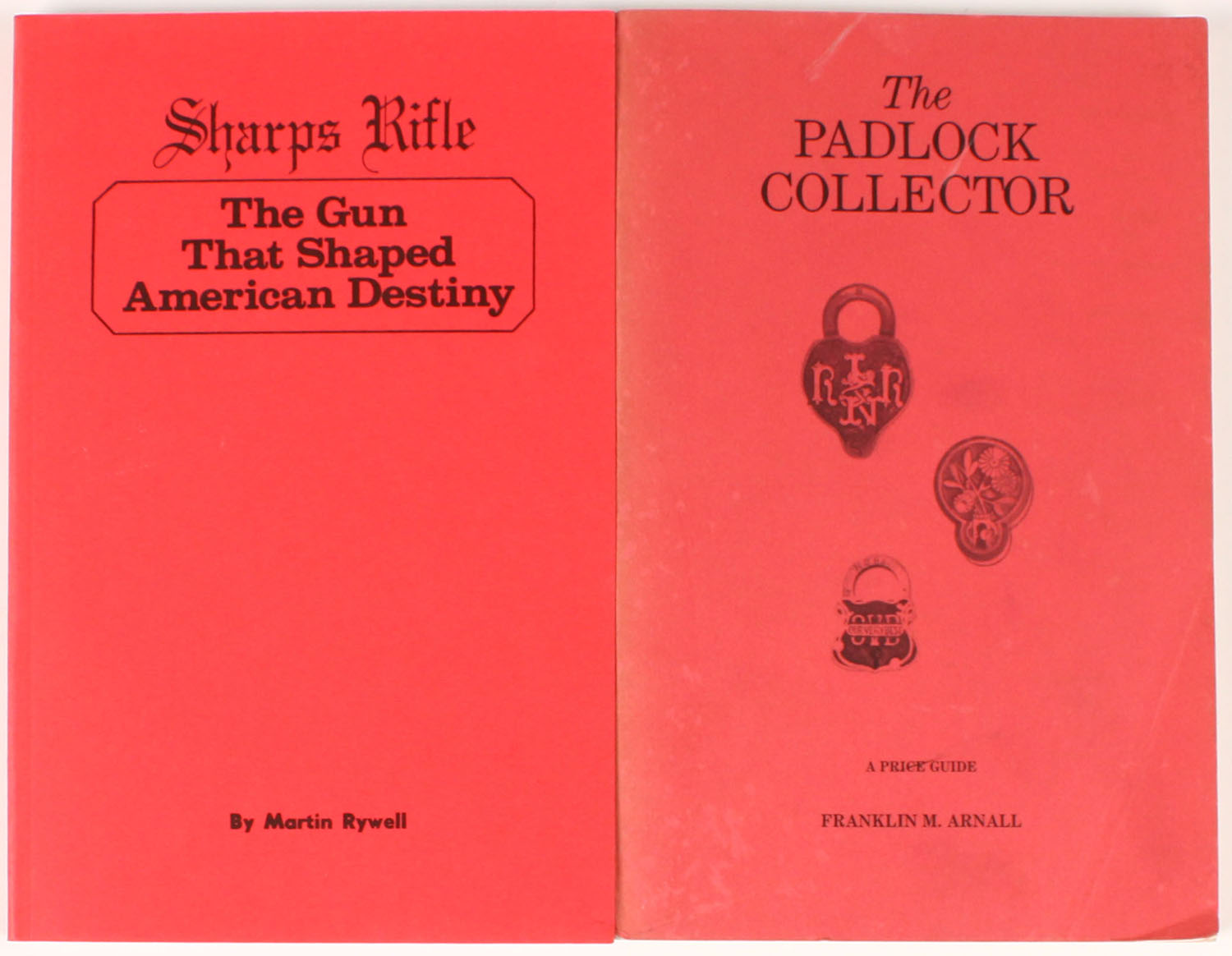 Lot of 2 (1) Sharps Rifle The Gun That Shaped American Destiny by Martin Rywell, 156 pages. (1) The Padlock Collector A Price Guide by Franklin M. Arnall Fifth Edition, 191 pages. Both 5 1/2'' x 8 1/2''. Paper covers very good. Grade: Very Good ++ - Value: 6 to 60