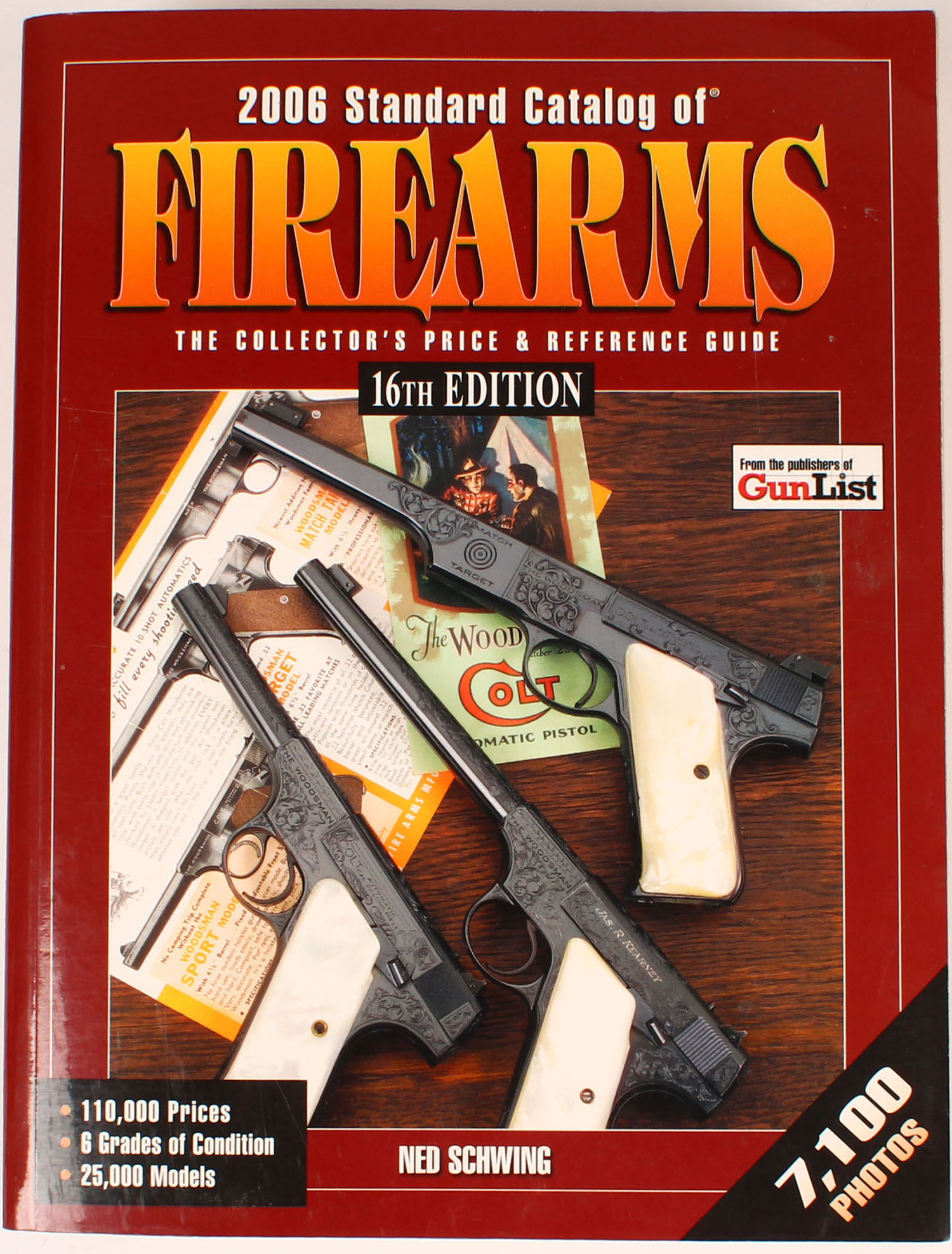 2006 Standard Catalog Of Firearms: The Collector's Price Reference Guide 16th Edition by Ned Schwing, 8'' x 11''. 1504 pages, pages clean, binding tight, softcover very good, B/W and colored images. Value: $100 Grade: Excellent ++ - Value: 2 to 100