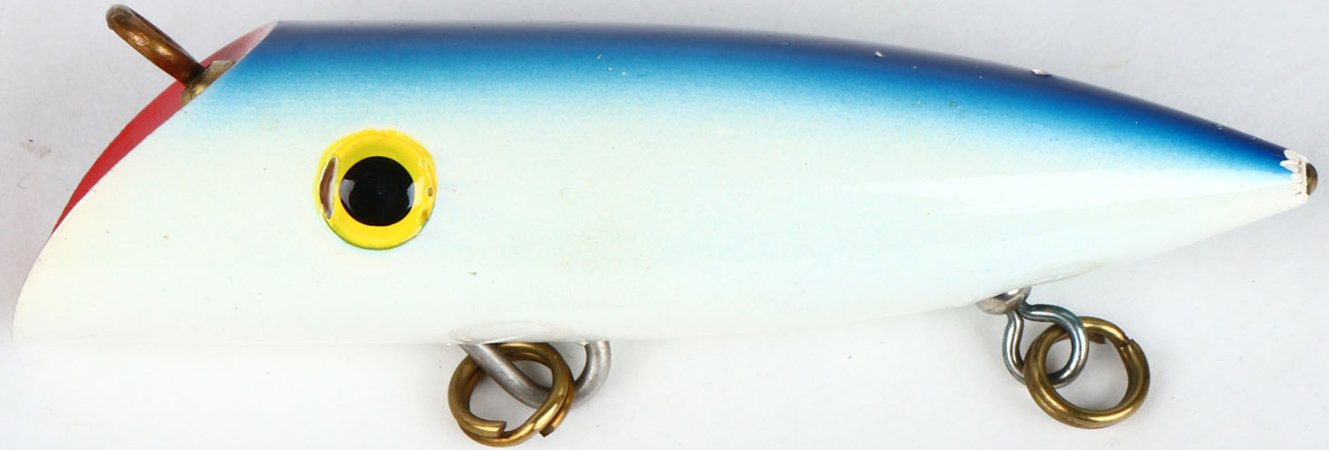 Wallace Highliner Salmon Plug, CE, well marked, white & blue. Grade: Excellent - Value: 2 to 30