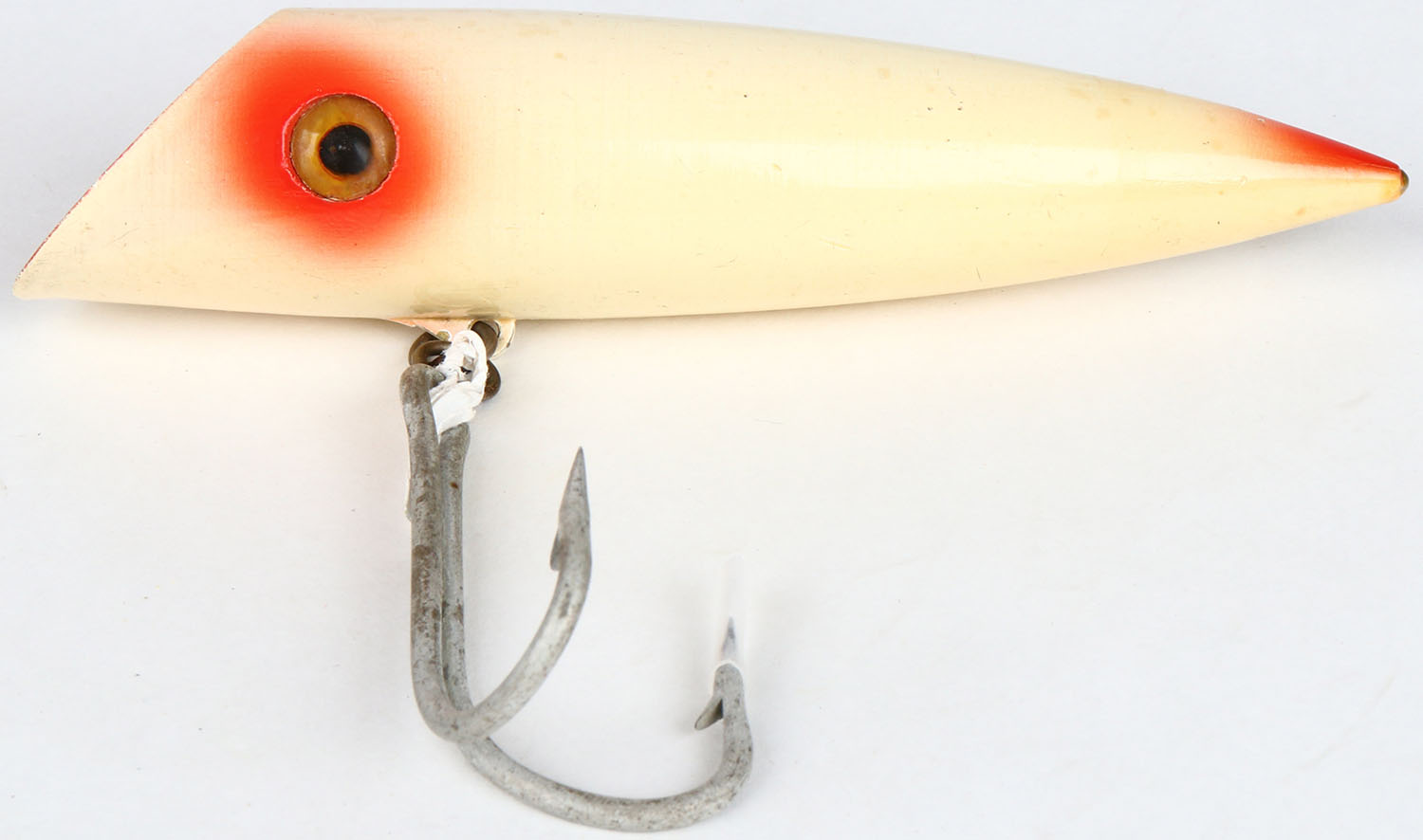 Hanson Salmon Plug, CE, unmarked, white & red. Grade: Excellent ++ - Value: 2 to 40