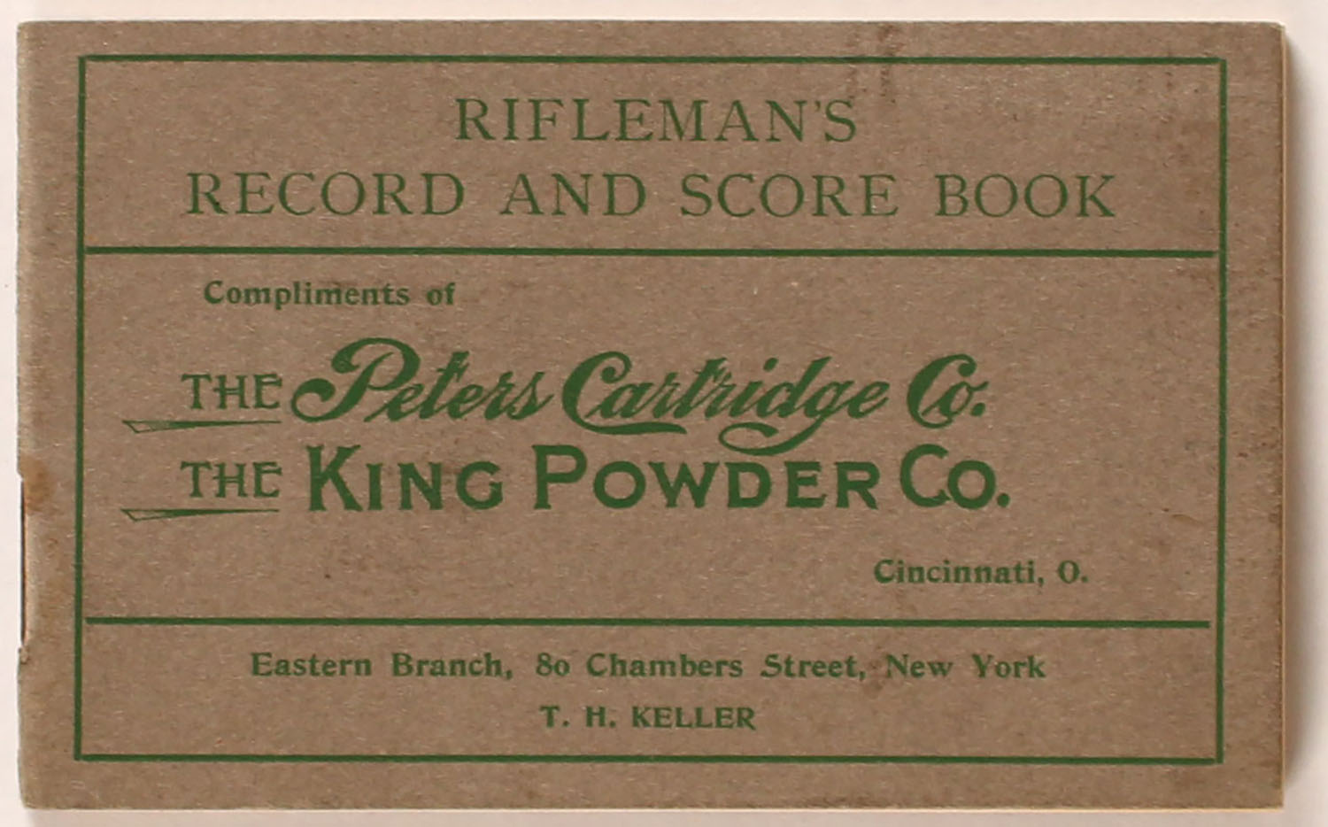 Peters Cart. Co. & The King Powder Co. Rifleman's Record and Score Book, about 26 pages, 5 1/4'' x 3 1/4''. Grade: Excellent - Value: 6 to 50