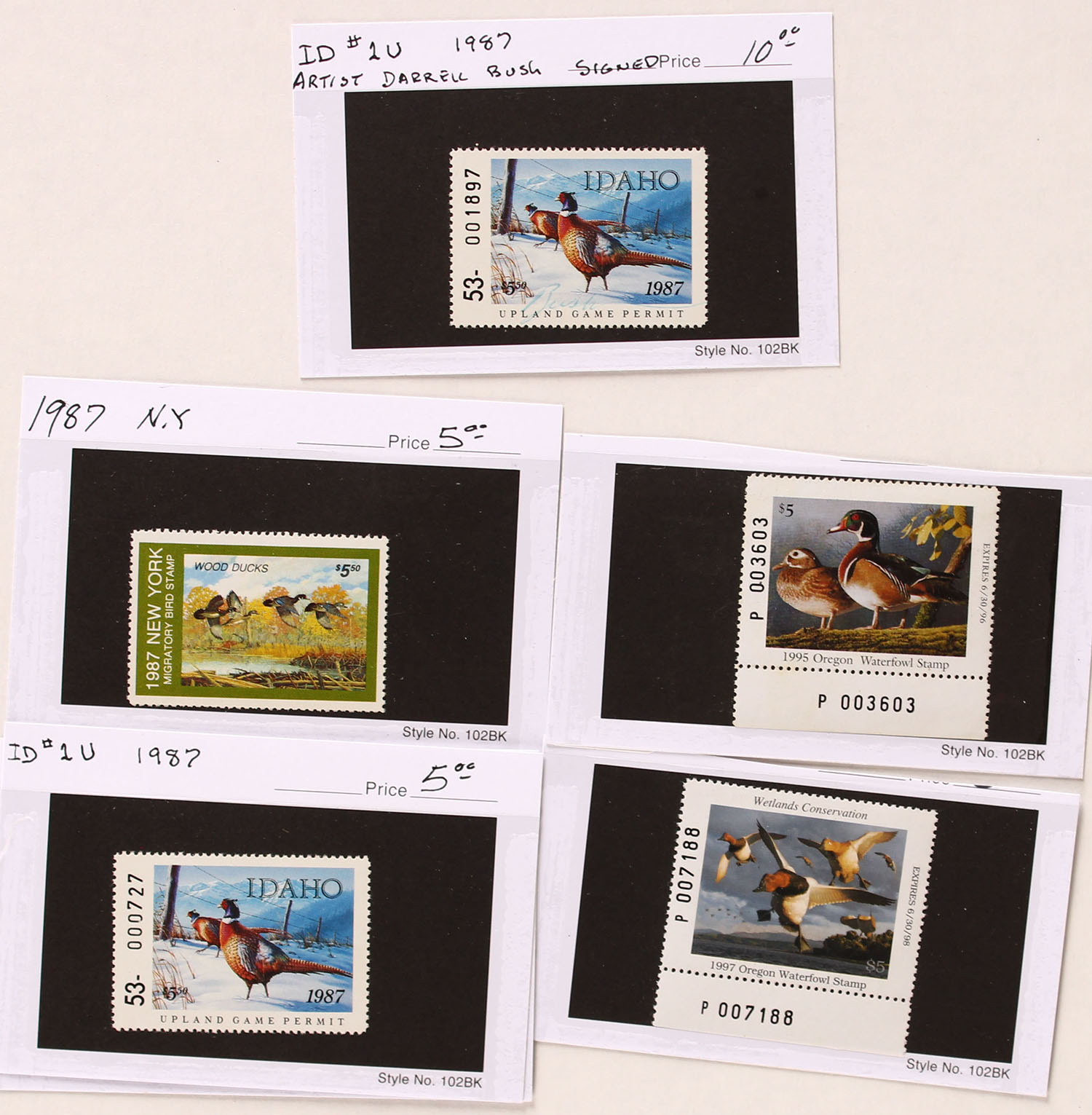 Lot of 6 State Duck Stamps, all are unsigned. Grade: Excellent - Value: 10 to 60