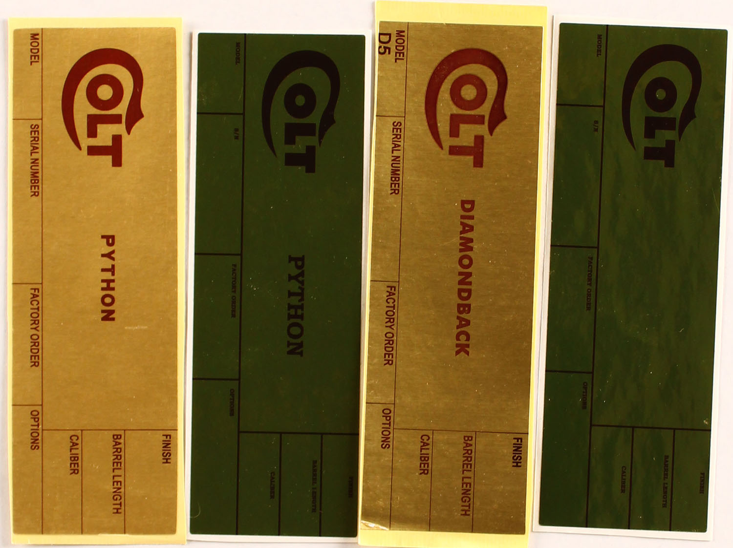 Set of Colt end labels for pistols. Grade: MINT - Value: 2 to 40