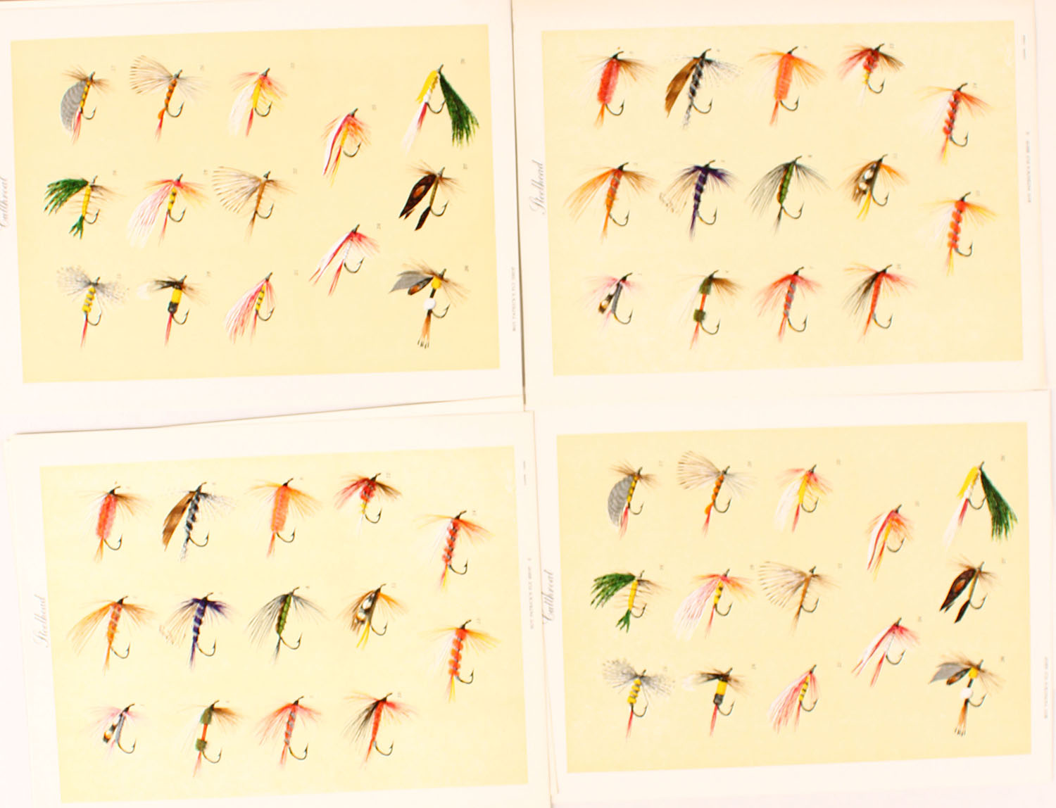Lot of fishing flies on paper. Grade: Excellent - Value: 2 to 40