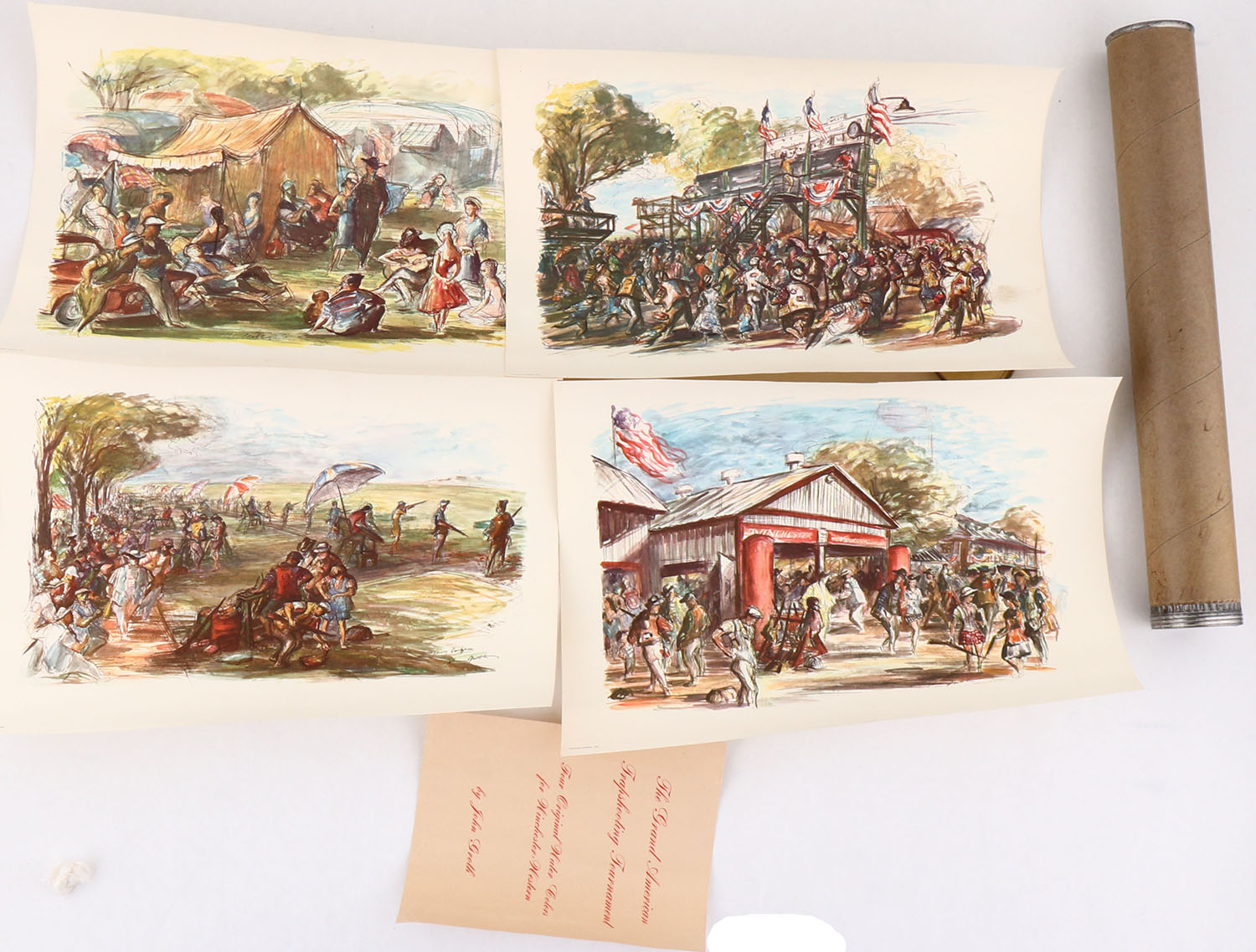Lot of 4 prints made for the Grand American Trapshootind Tournament promoted by Winchester & Western, pictures scenes from the trapshooting event, 14'' x 10''. Grade: Excellent - Value: 6 to 50