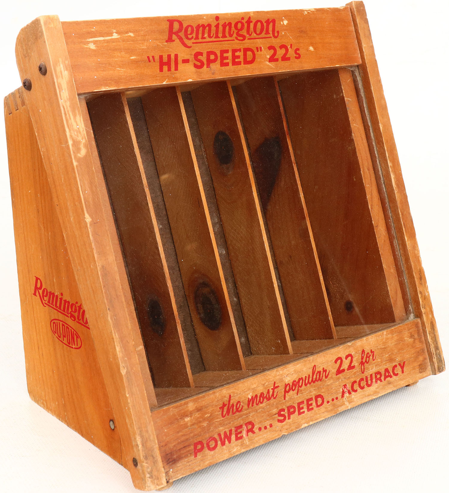 Small Remington High-Velocity 22's display, wood is very solid and red paint is bright and clean. Grade: Excellent ++ - Value: 200 to 500