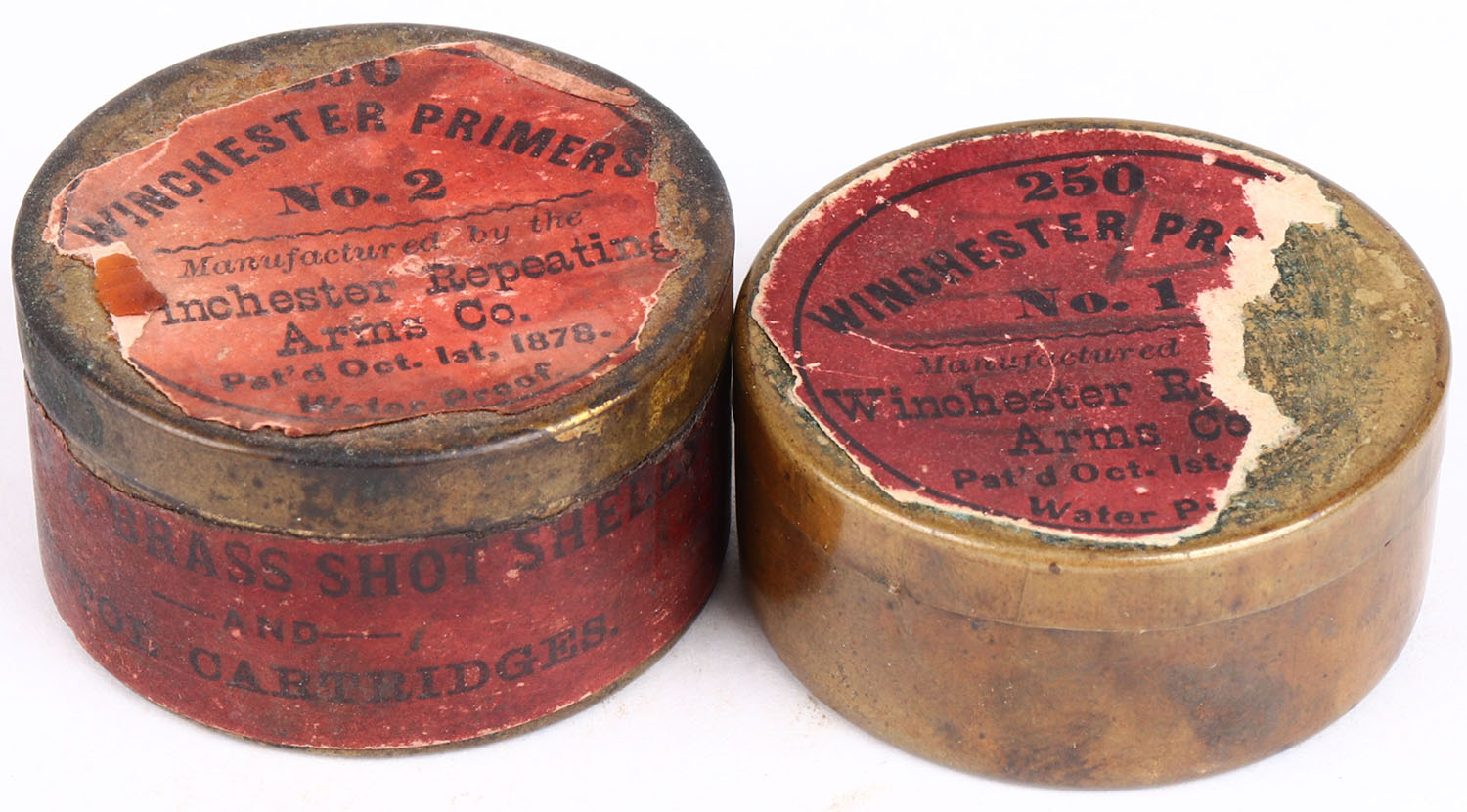 Lot of 2 Winchester primer tins, Partial, has rust and age soiling, 250 count. Grade: Very Good - Value: 2 to 40