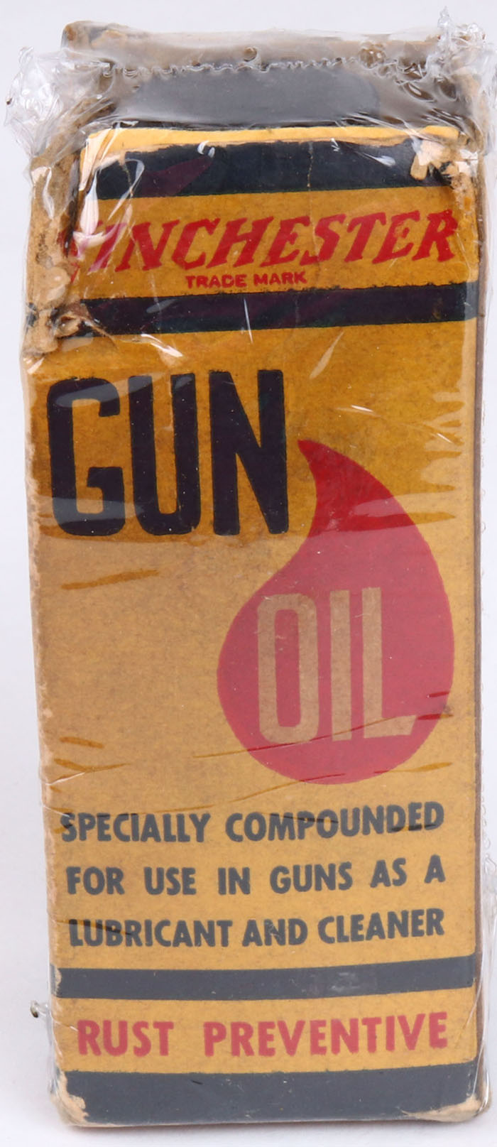 Winchester Gun Oil, has original box, glass jar with screw on cap, partial, glass jar is solid with age soiling, box has some age soiling and scuffing, missing top. Grade: Very Good - Value: 10 to 40