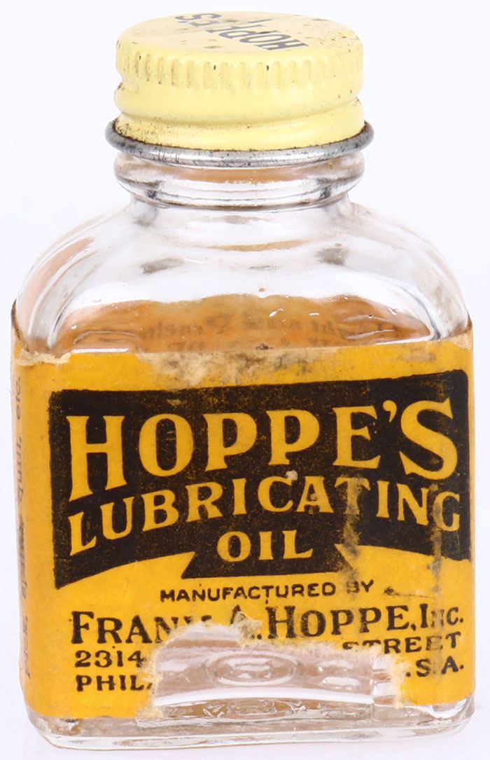 Hoppes Oil glass jar with paper label, Empty, scuffing to label Grade: Very Good ++ - Value: 6 to 60