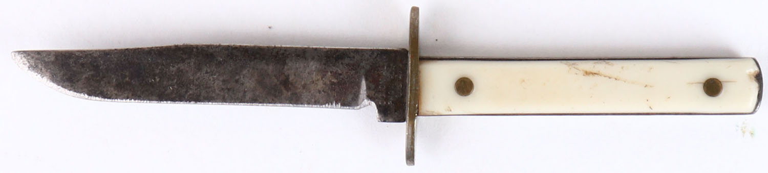 Very Small Colonial fixed blade knife, celluloid handle, has some soiling, 2'' blade. Grade: Very Good ++ - Value: 2 to 100