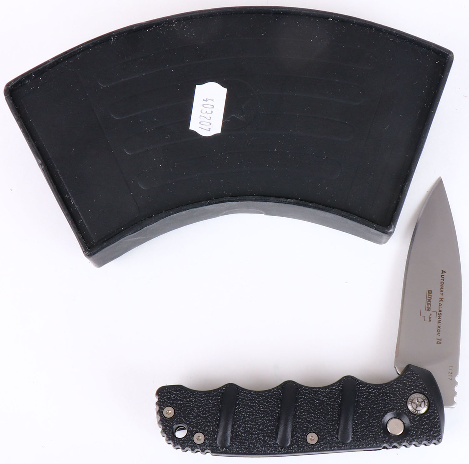 Boker folding knife in orignal box, 3'' blade, has sheath, NIB not automatic. Grade: Excellent ++ - Value: 16 to 60
