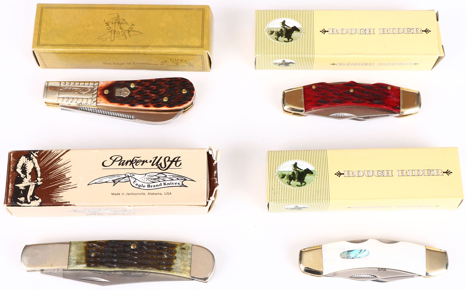 Lot of 4 knives in orignal boxes. Grade: Excellent ++ - Value: 30 to 90