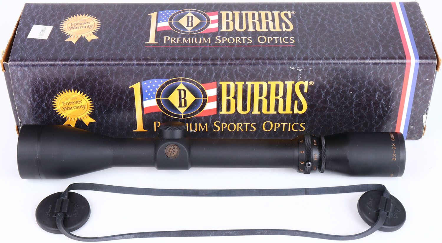 Burris rifle scope 3x-9x #200301, in orignal box. Grade: Excellent ++ - Value: 50 to 300