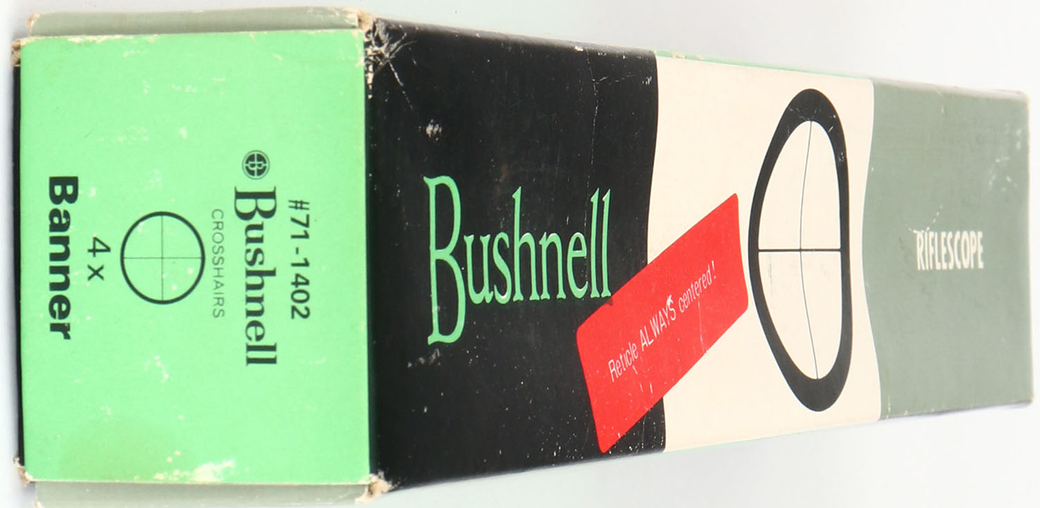 Bushnell Banner rifle scope 4x, #71-1402, in orignal box. Grade: Excellent - Value: 30 to 90